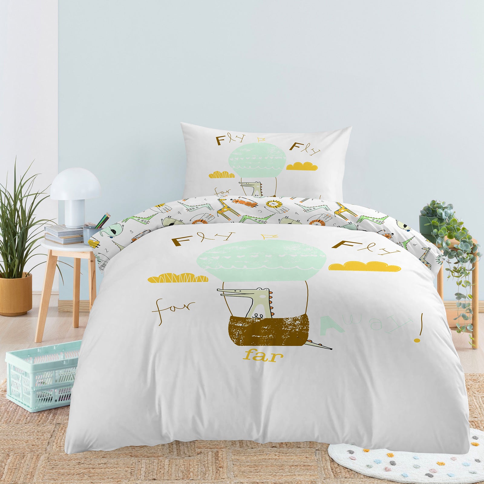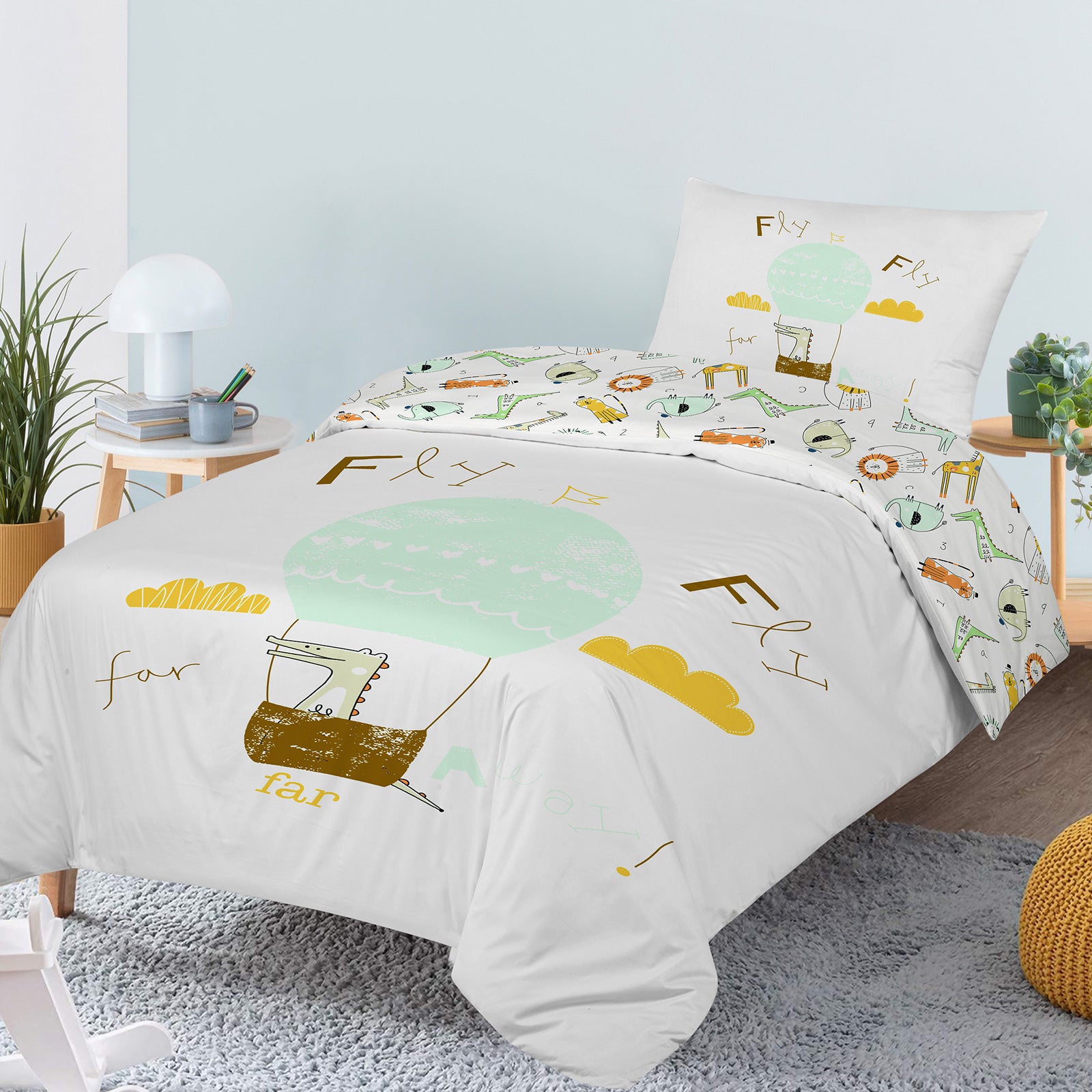 - Lenjerie de pat pentru copii din 100% bumbac cu dimensiunea 140 x 200 cm.