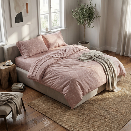 Lenjeria noastră de pat este realizată din 100% bumbac natural, care este prelucrat cu atenție și modelat într-o țesătură de calitate.