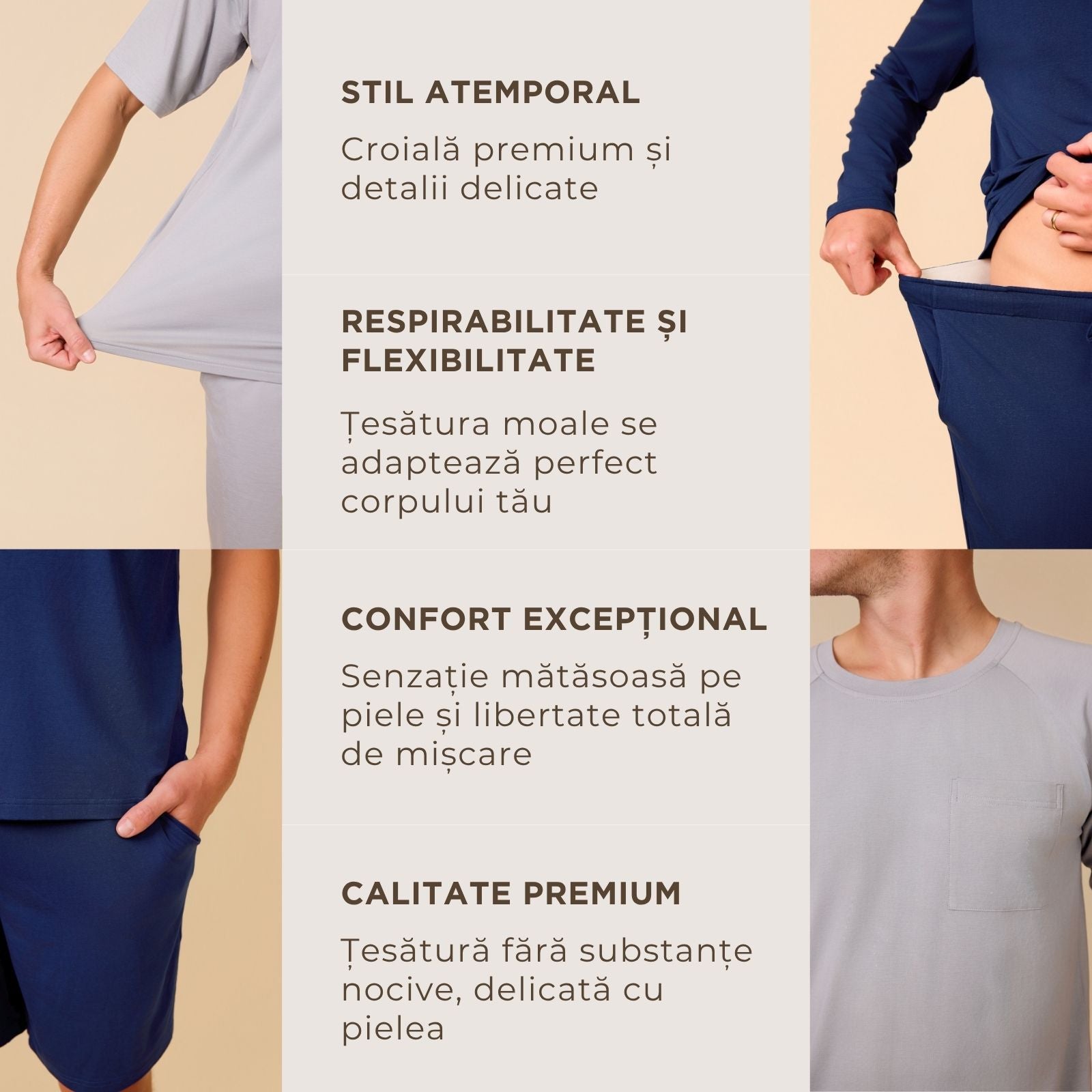 • Armonia materialelor naturale – viscoza de bambus și bumbacul oferă protecție antibacteriană naturală