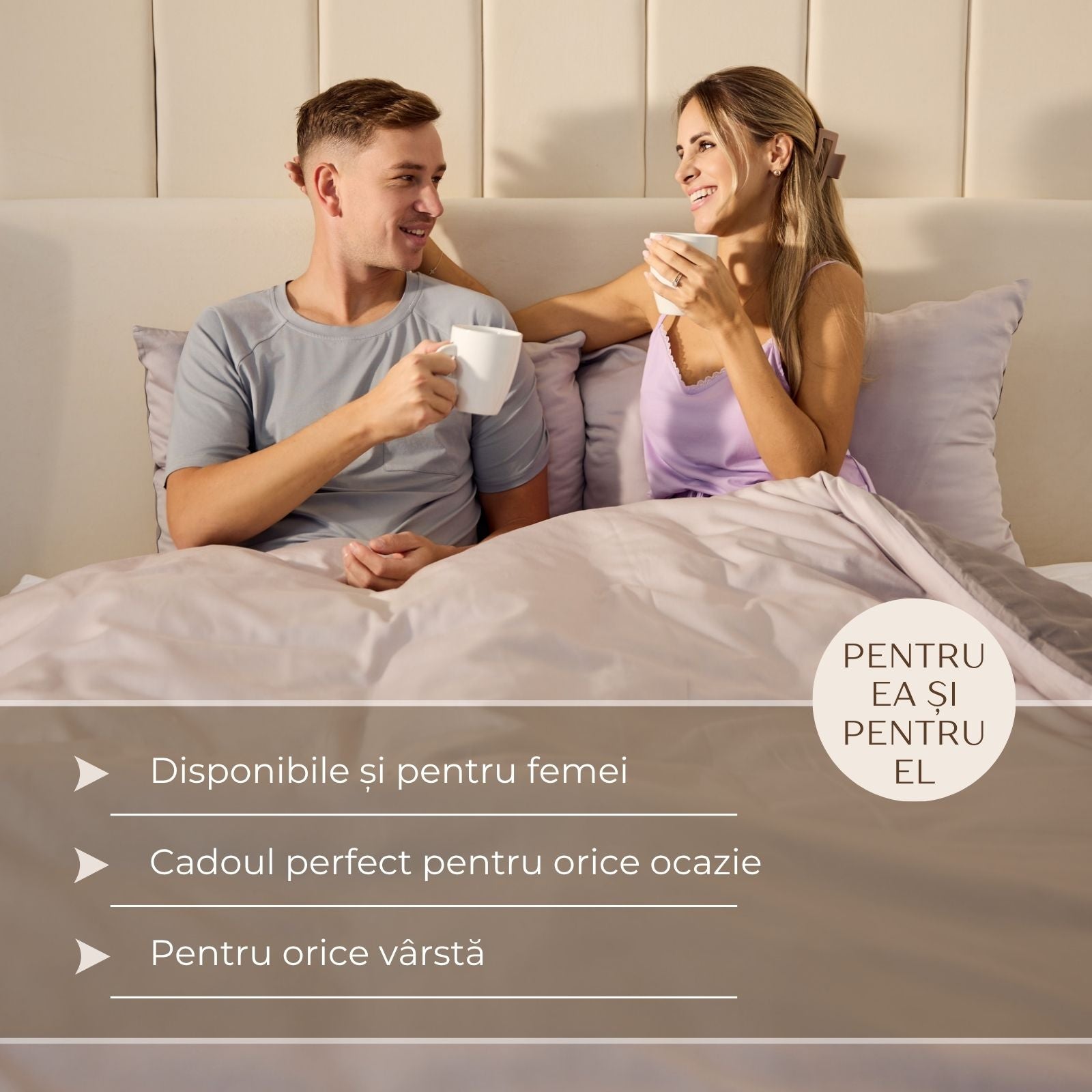 Răsfață-te cu luxul catifelării și al confortului absolut. Bucură-te de rafinament autentic, datorită unui amestec excepțional de, materiale naturale de cea mai bună calitate care îți învăluie delicat corpul lasă pielea să respire și îți oferă o senzație plăcută noapte de noapte.