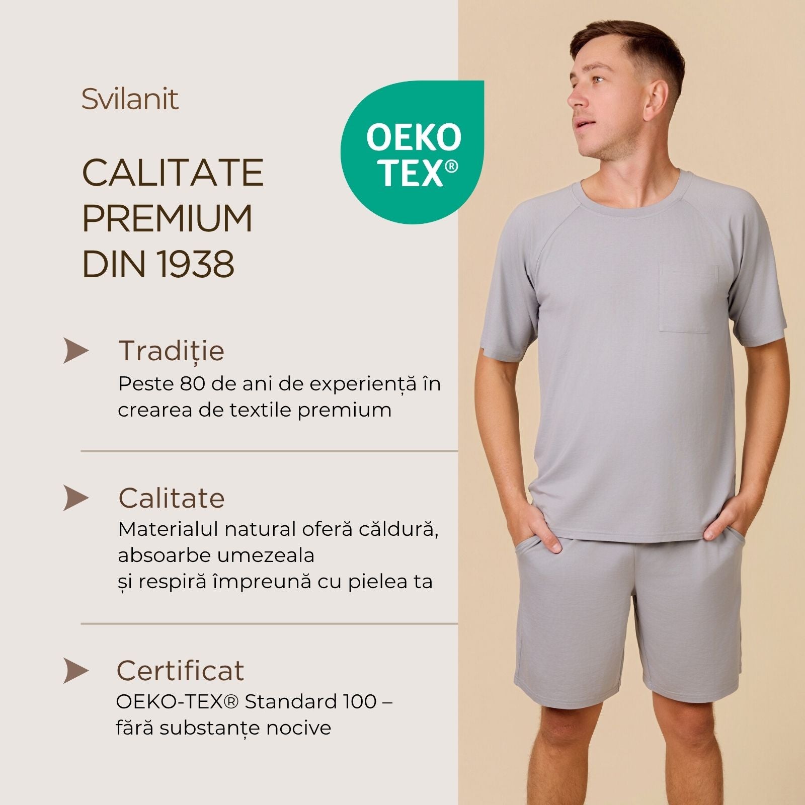 Pijamalele pentru bărbați Lennox au cea mai înaltă certificare textilă – OEKO-TEX® Standard 100 – fiind lipsite de substanțe nocive și sigure pentru pielea ta.