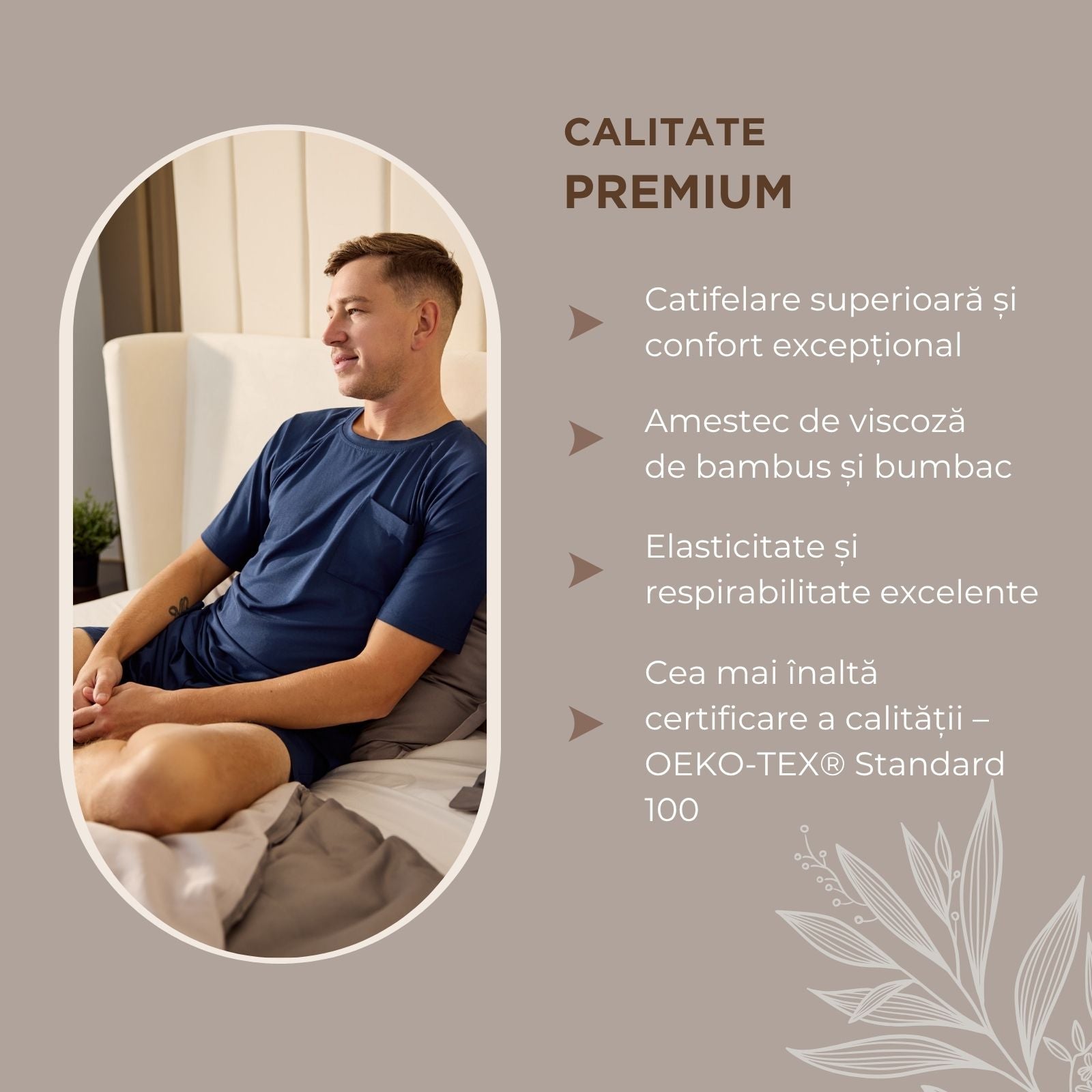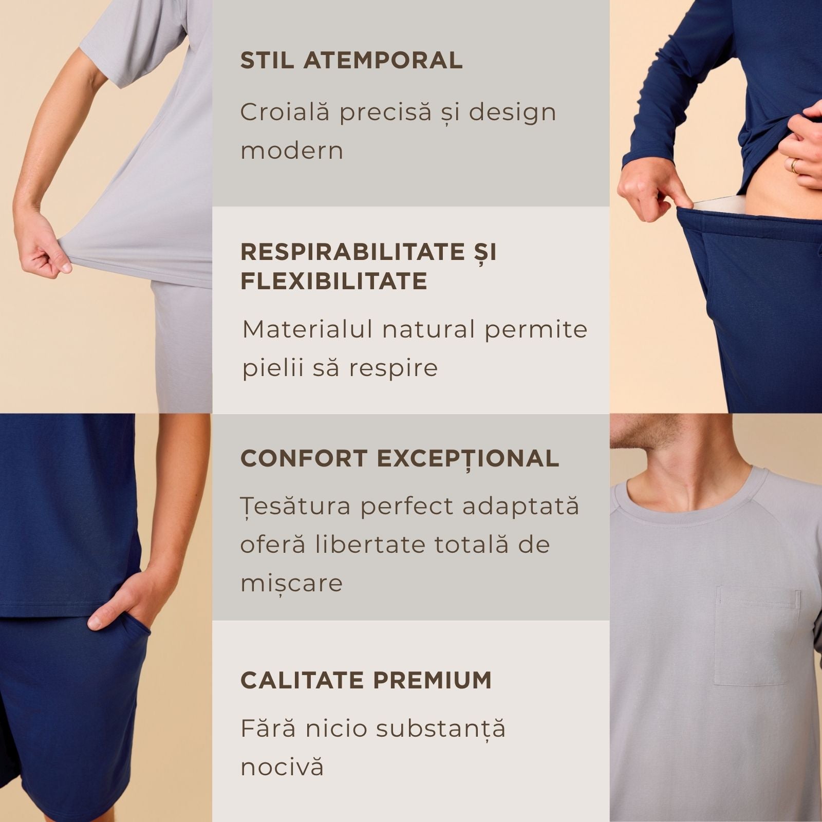 - Armonia materialelor naturale – viscoza de bambus și bumbacul oferă protecție antibacteriană naturală