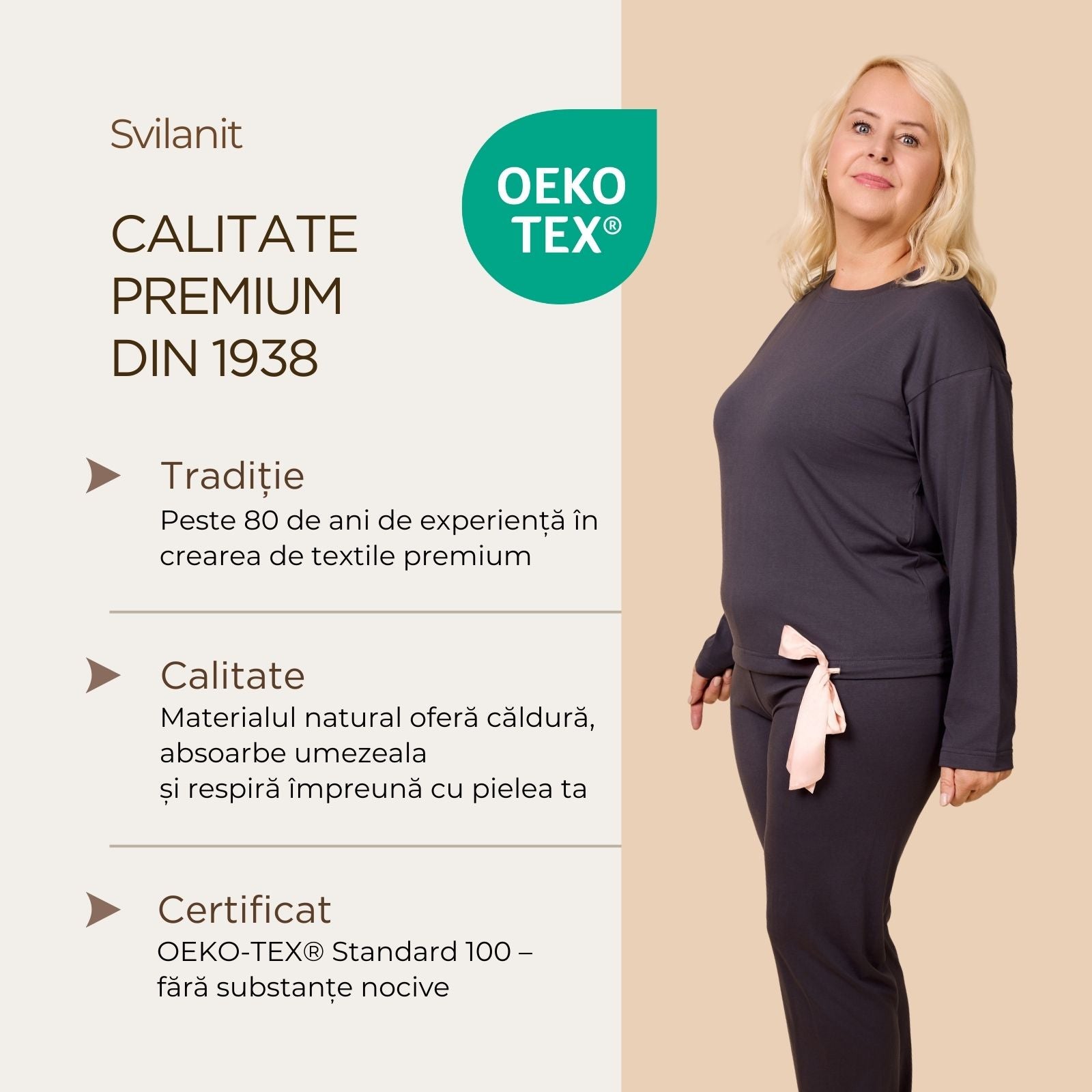 Pijamalele de damă Soléa au cea mai înaltă certificare textilă – OEKO-TEX® Standard 100 – fiind lipsite de substanțe nocive și sigure pentru pielea ta.
