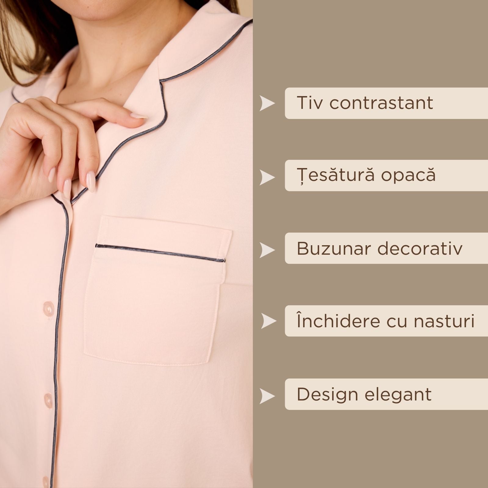 - Bluză tip cămașă cu decolteu în V, închidere cu nasturi și buzunar la piept