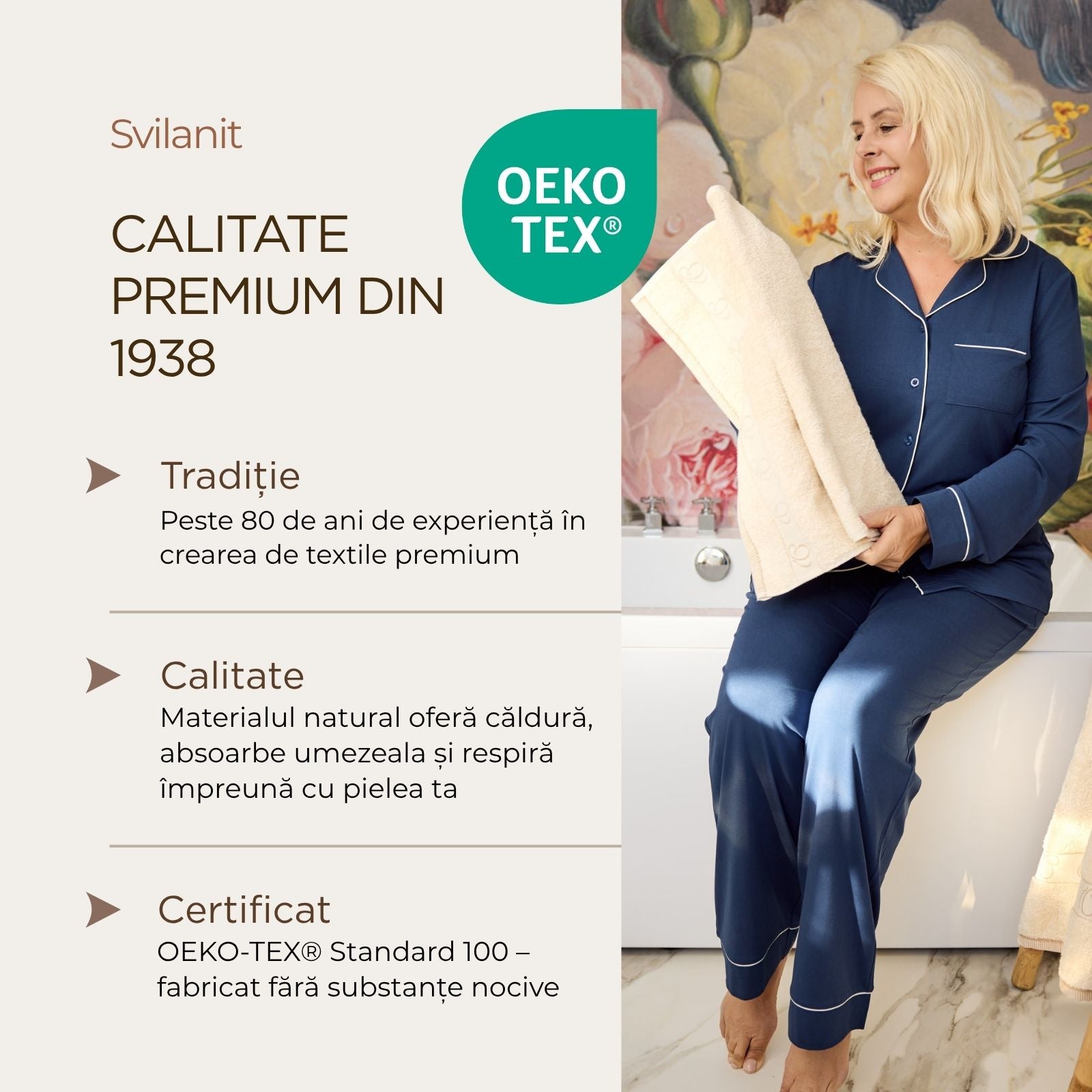 - Material extrem de moale, respirabil și natural, care se simte ca o a doua piele