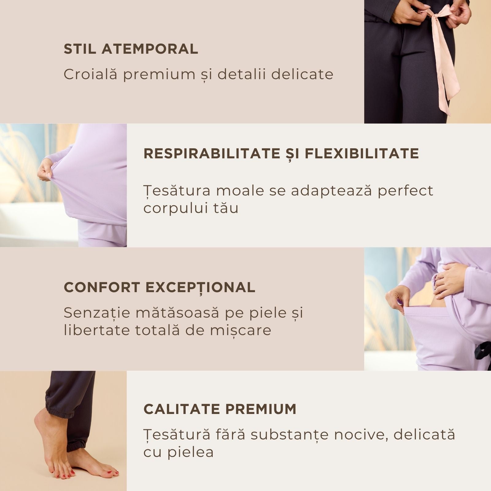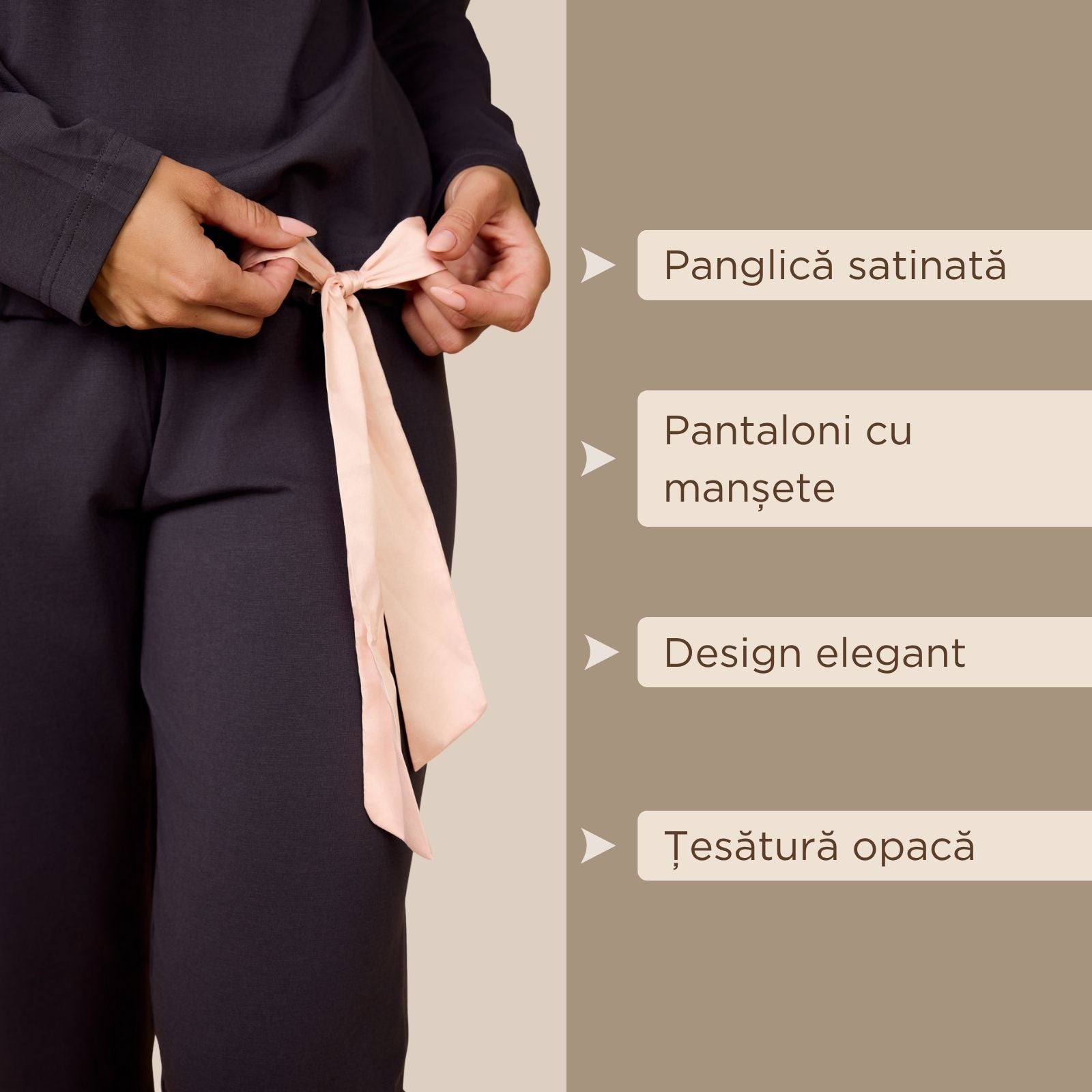 - Pantaloni lungi comozi, cu talie elastică și manșete moi