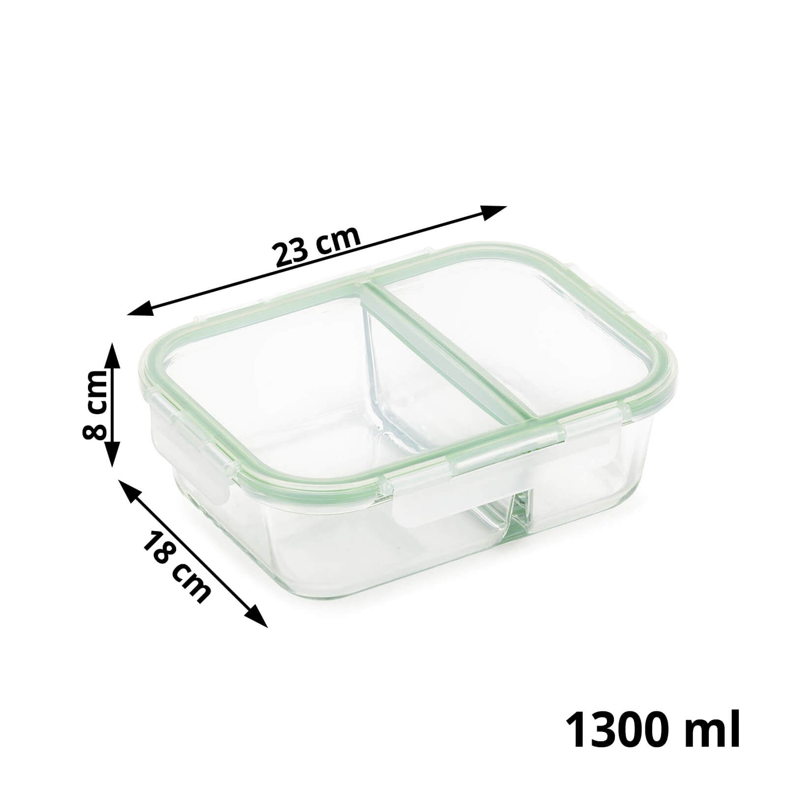 - Vas dreptunghiular de sticlă cu compartiment și capac.