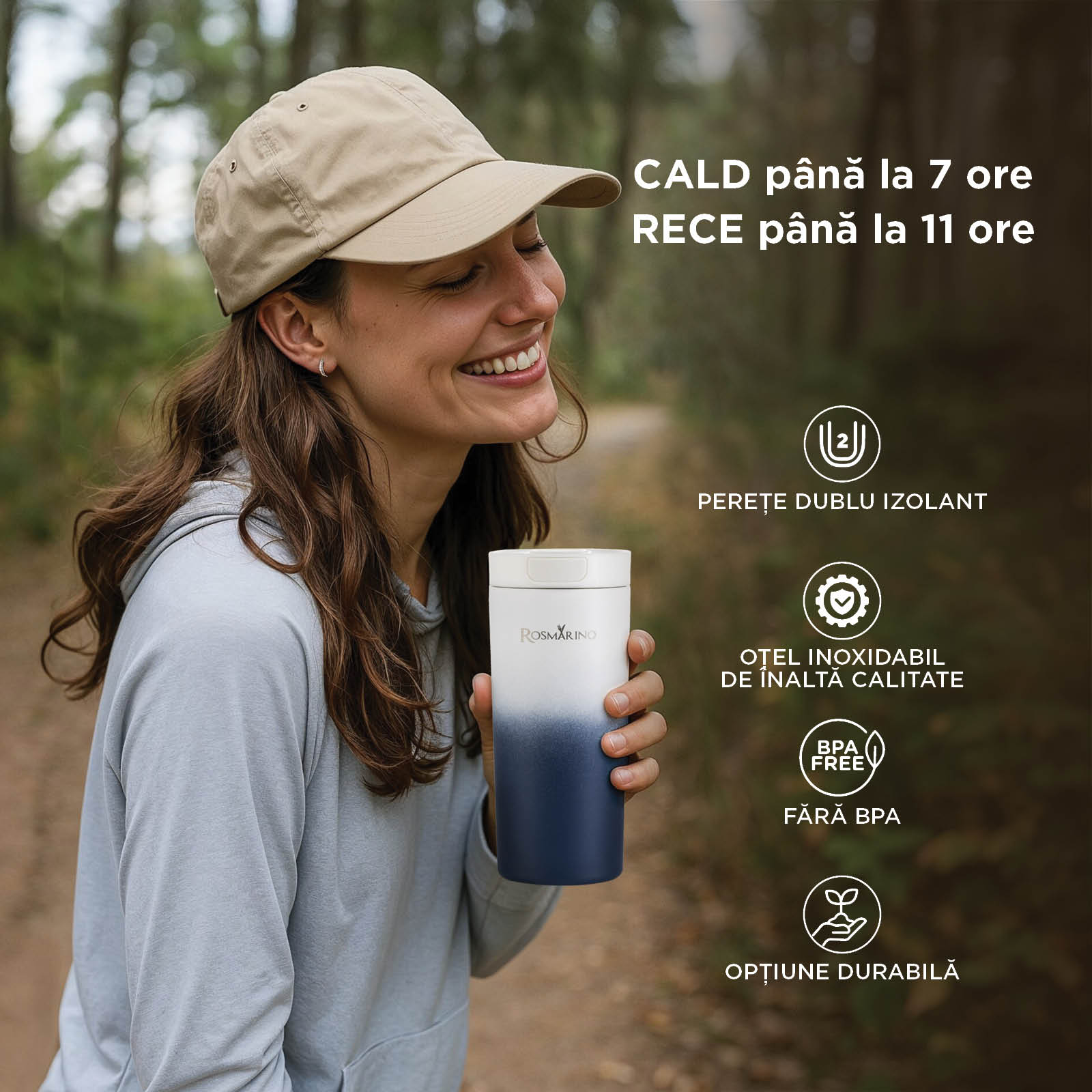 - Peretele dublu menține băuturile calde până la 7 ore și reci până la 11 ore.