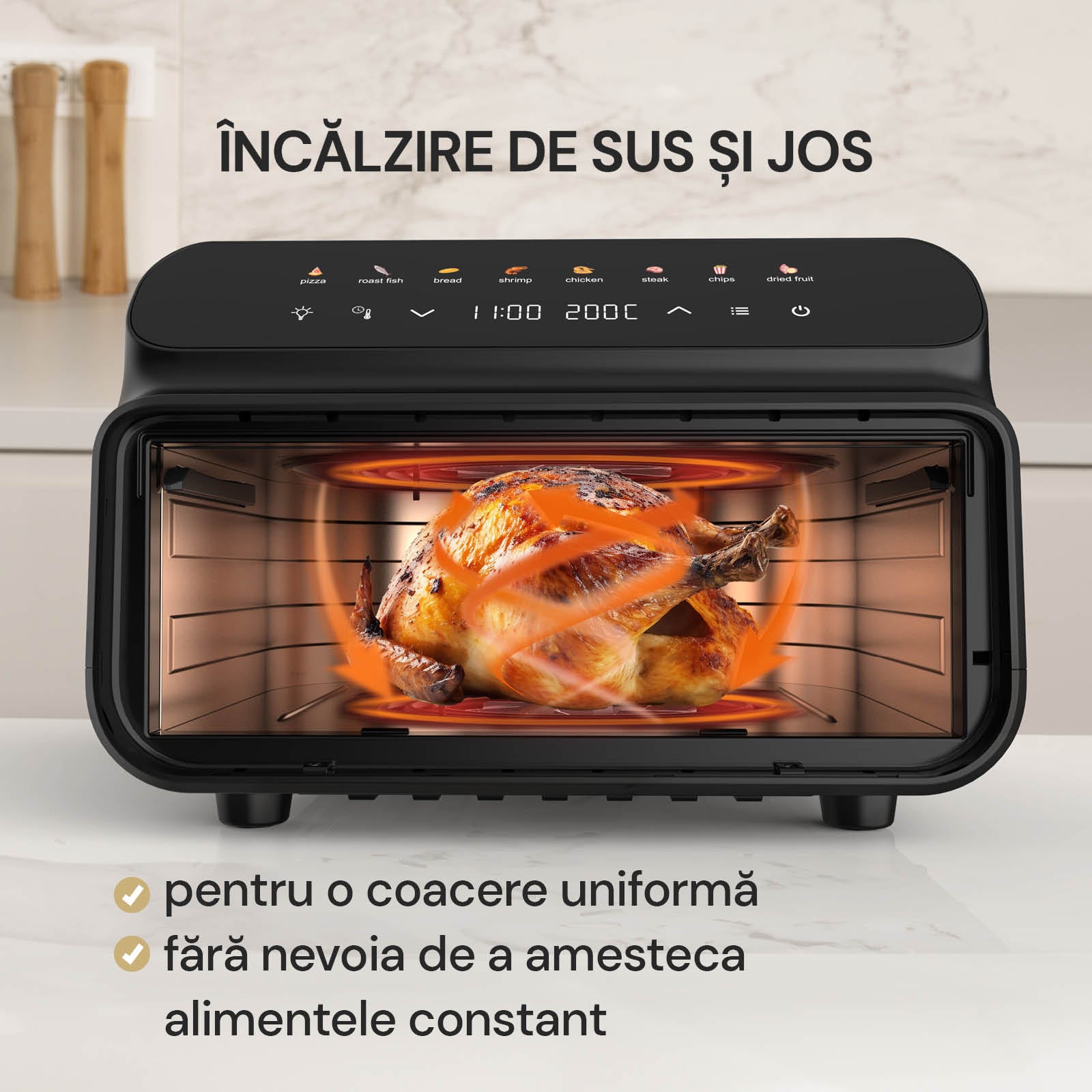 Încălzire de sus și jos pentru o preparare rapidă și uniformă a ingredientelor.