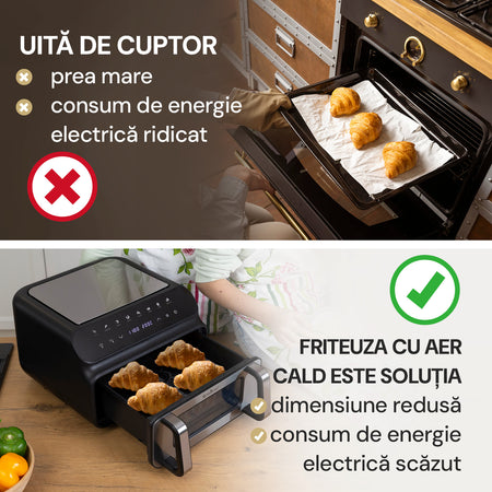 - Uită de cuptor și de prăjirea convențională și economisește timp și energie.