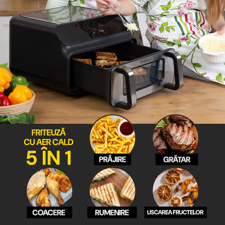 Cea mai mare friteuză cu aer cald - 10 litri - pentru întreaga familie și pentru oaspeți.