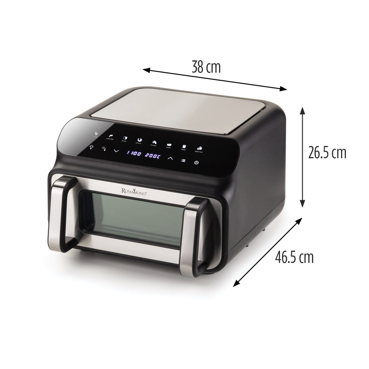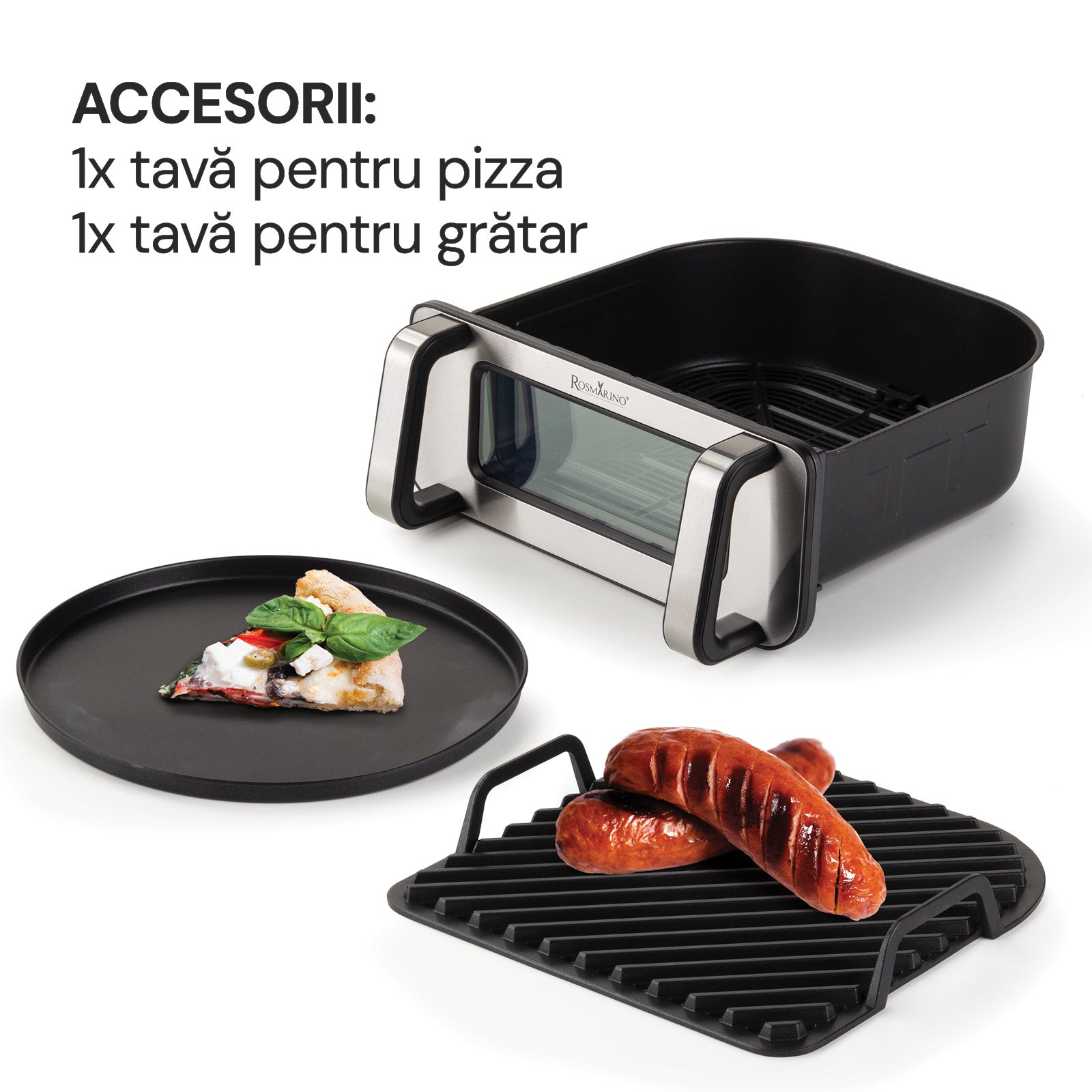 - Cel mai mare air fryer din gama Rosmarino poate pregăti mese pentru oaspeți și familie în coșul de 10 litri.
