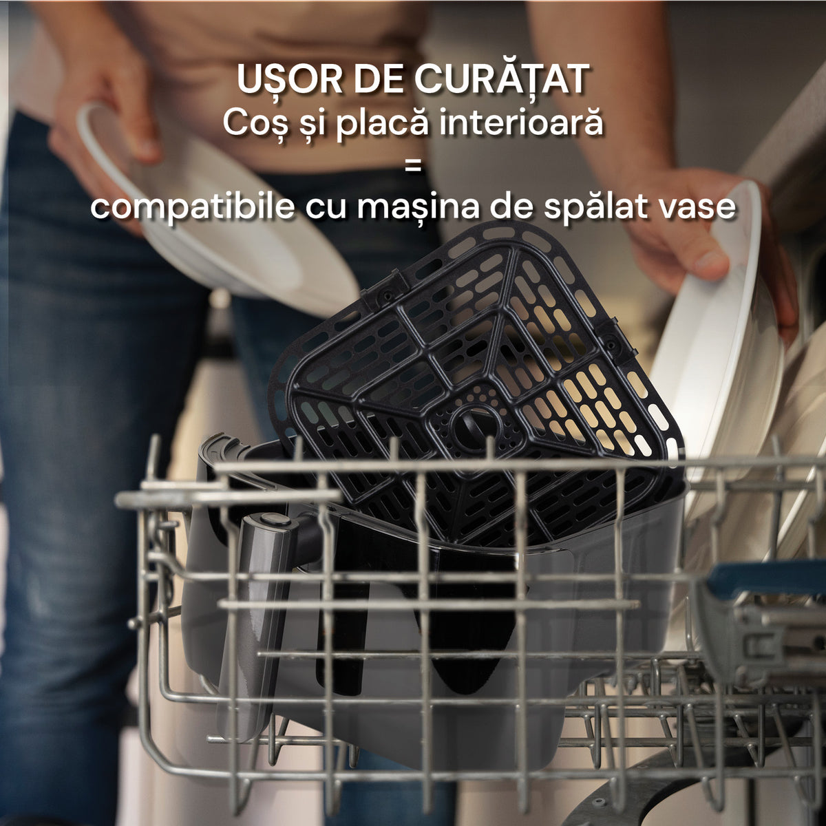 - Strat antiaderent în coș pentru gătire și curățare ușoară.