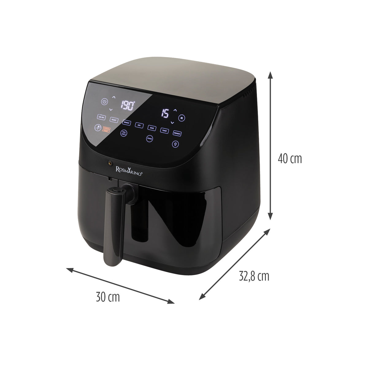 Air fryer-ul Rosmarino TempSense este conceput pentru a te ajuta să obții rezultate profesionale cu un efort minim. Avantajul său unic este senzorul de temperatură integrat, inovator, care asigură gătirea cărnii exact la gradul de preparare dorit. Trebuie doar să selectezi tipul de carne și nivelul de preparare dorit – senzorul face restul. Capacitatea coșului de 6 L este perfectă pentru a pregăti mese pentru întreaga familie sau gustări pentru o seară cu prietenii. Poți alege dintre 7 programe presetate și monitoriza procesul de gătire prin fereastra transparentă cu lumină încorporată. Acest air fryer este alegerea ideală pentru preparate crocante, coapte cu mai puțină grăsime, susținând un stil de viață sănătos.