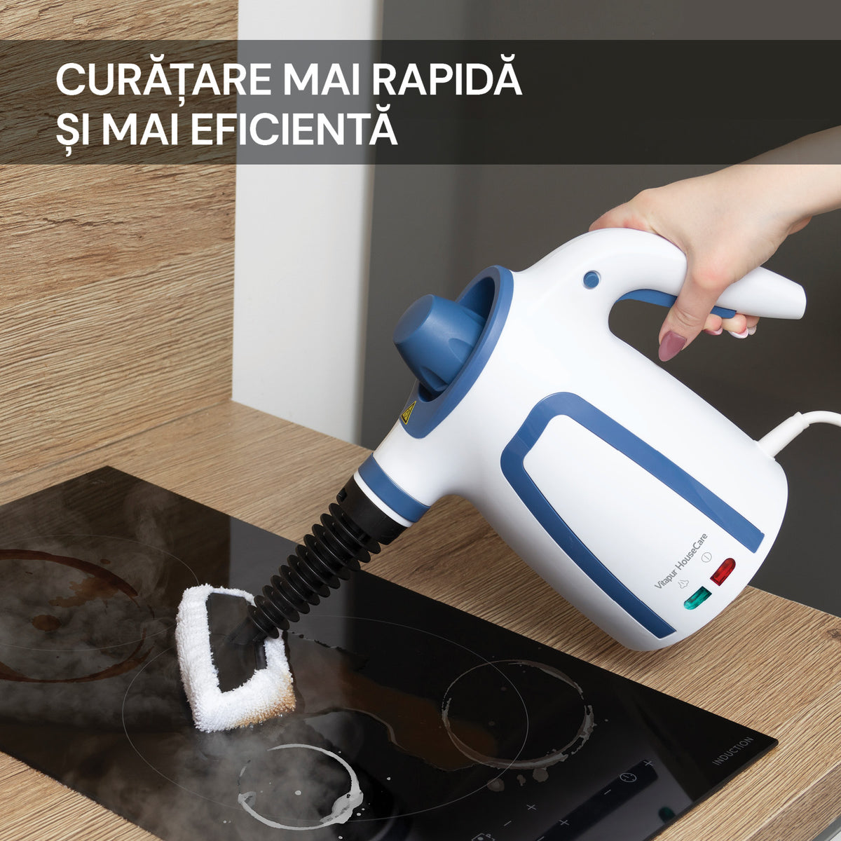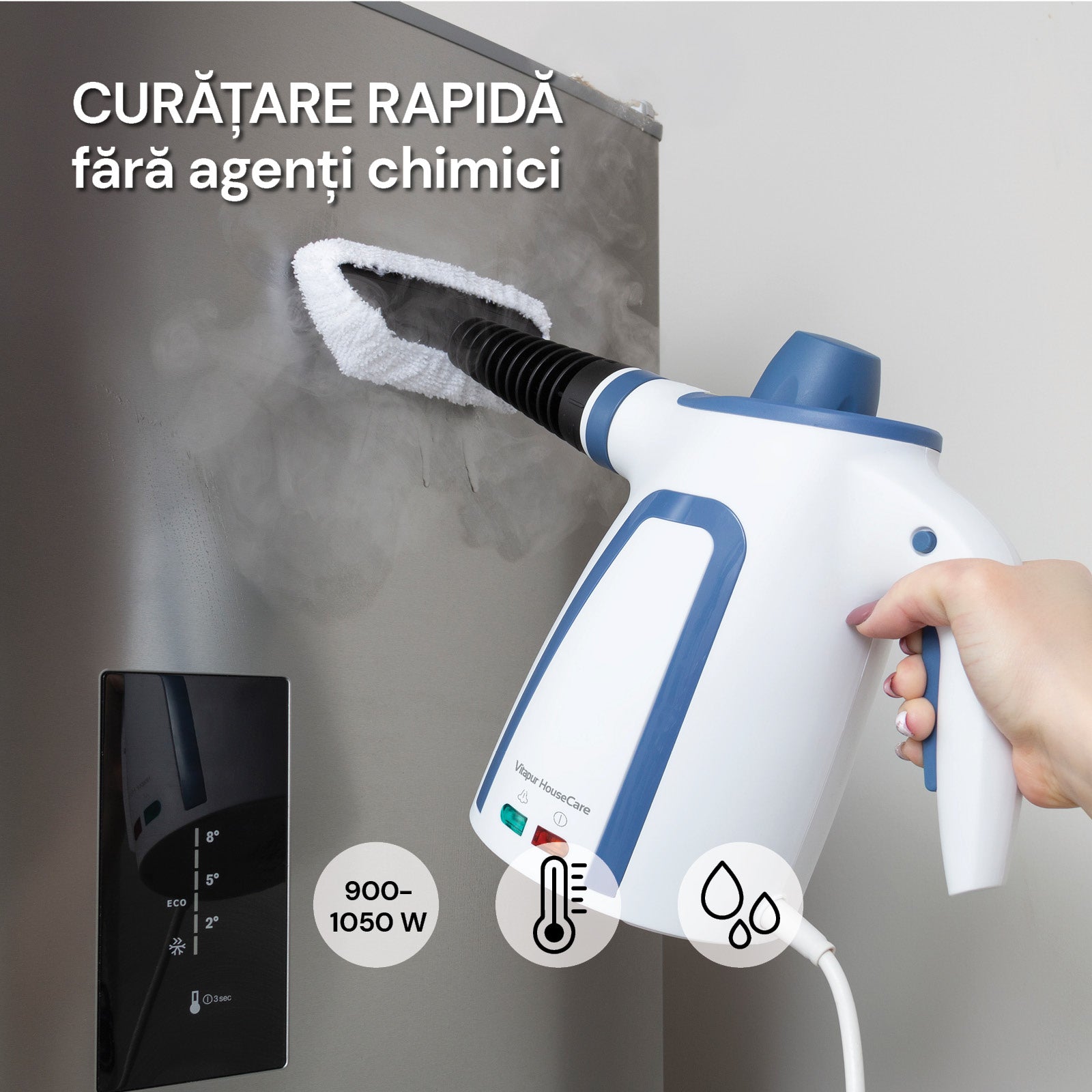 - Aparatul permite curățarea fără agenți chimici, fiind o opțiune ecologică.