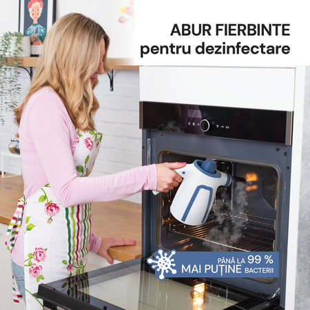 Aparatul cu aburi curăță și dezinfectează excelent suprafețele. Aburul fierbinte distruge până la 99,9% dintre microorganisme, fără a utiliza substanțe chimice. Spune adio acarienilor, mucegaiului și altor alergeni din locuință. În plus, acest aparat este cel mai bun ajutor pentru părinții care doresc să dezinfecteze jucăriile.