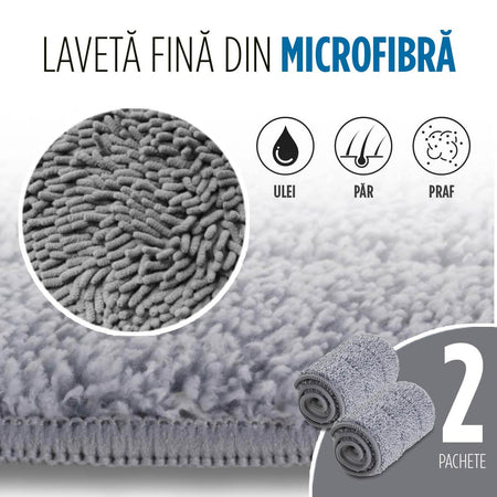 Puteți folosi aparatul de curățat podea pentru curățarea umedă. Acest lucru te va ajuta în fiecare colț al casei tale! Lavetele fine din microfibră incluse captează perfect firimiturile, părul de animale și alte particule de murdărie, putând, de asemenea, să curețe petele grase sau murdăria uscată. De asemenea, puteți folosi aparatul de curățat podea pentru a șterge praful de pe podea.