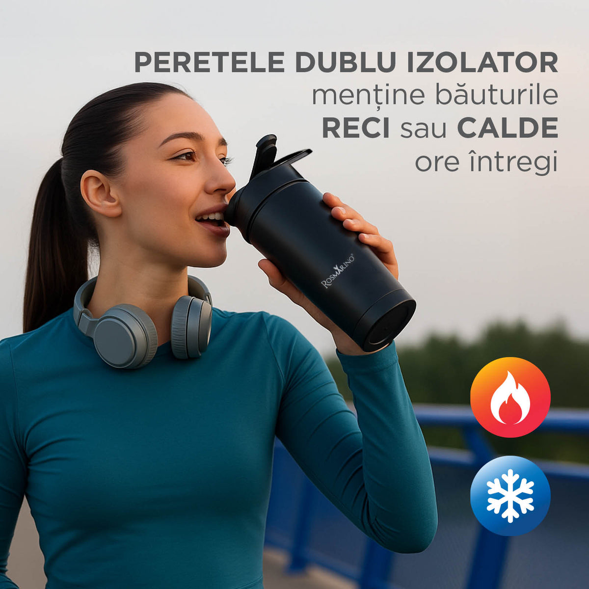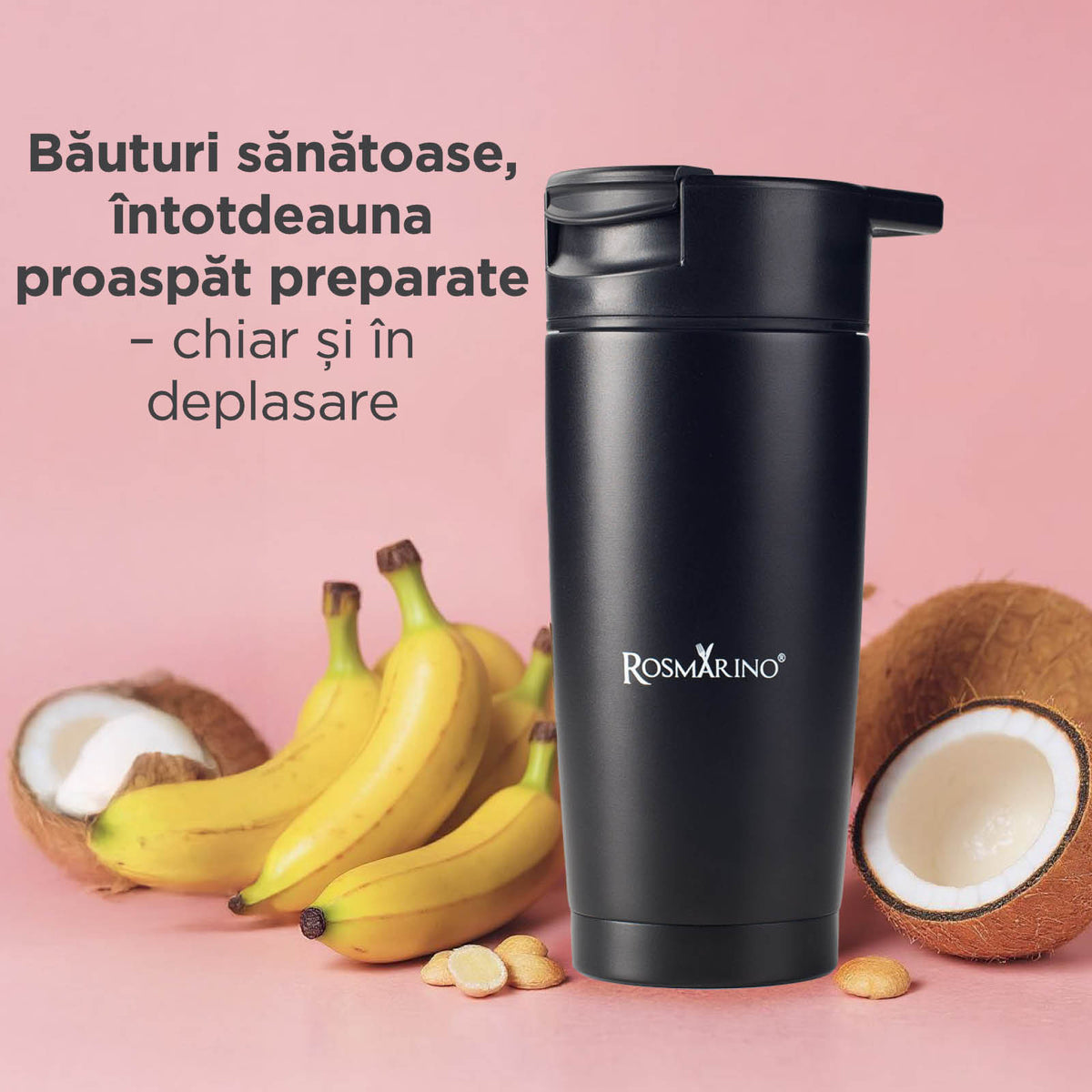 - Smoothie proaspăt preparat și rece, chiar și în deplasare, cu blenderul Rosmarino NutriMax 2GO Thermo.
