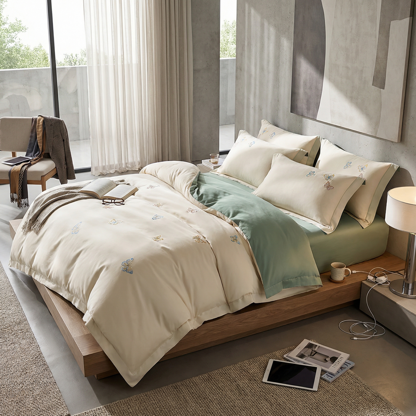 - Lenjerie de pat brodată de primă clasă, realizată 100% din bumbac egiptean de calitate.