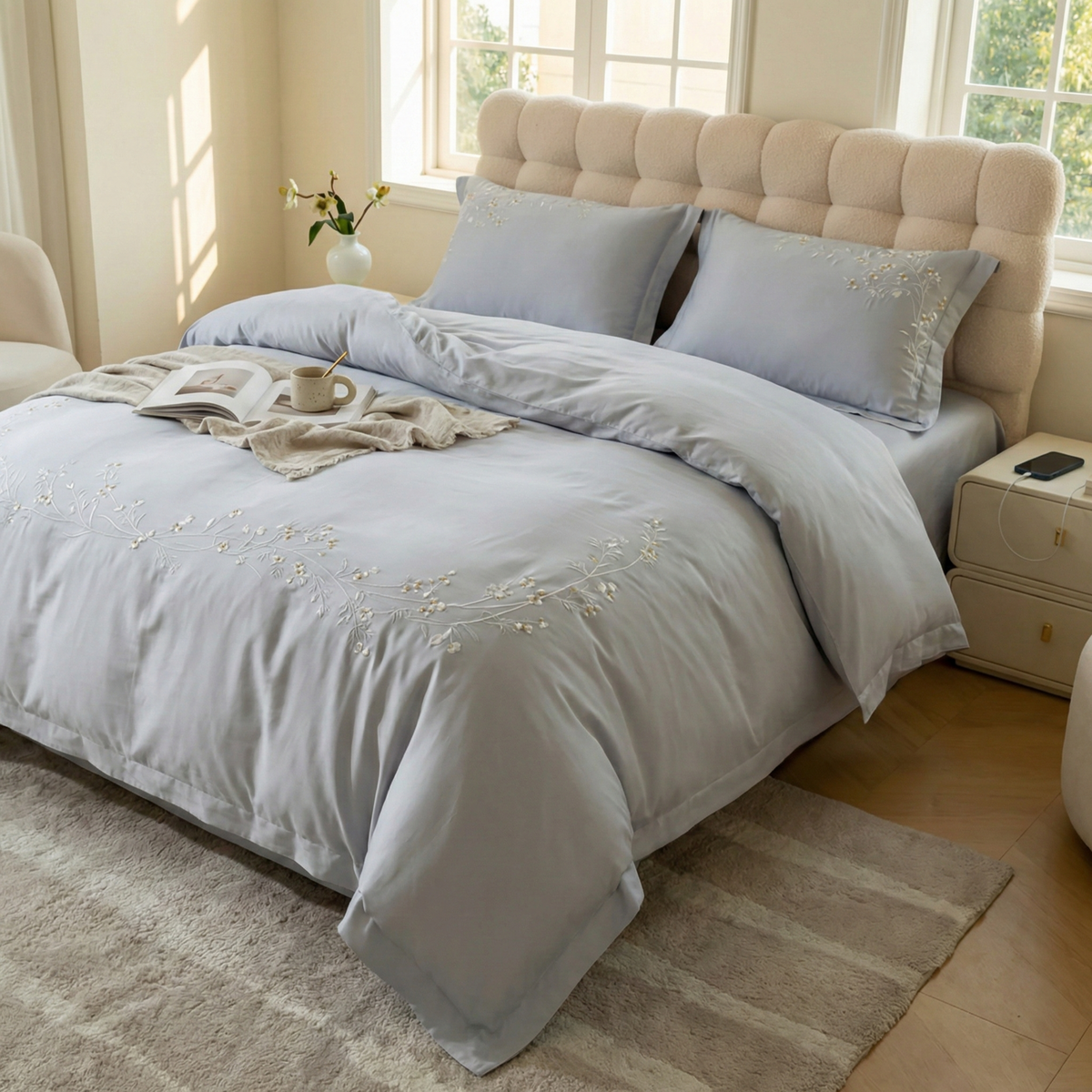 - Lenjerie de pat brodată de primă clasă, realizată 100% din bumbac egiptean de calitate.