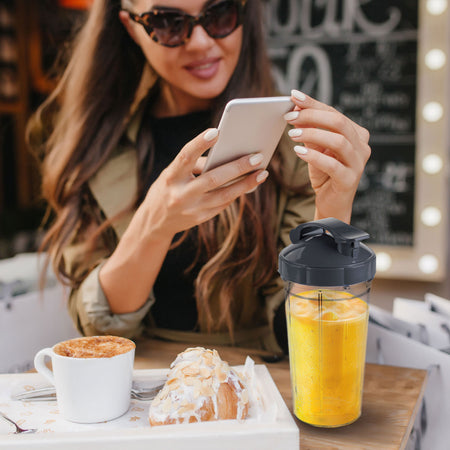 - 2 în 1: Recipient suplimentar pentru amestecare sau pahar „to-go” de sine stătător.