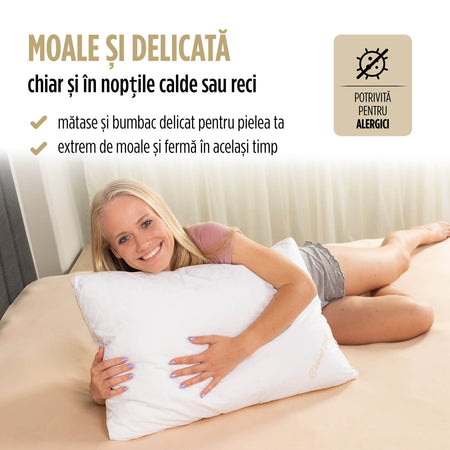 - Mătase naturală de calitate superioară pentru un somn cât mai autentic și relaxant.