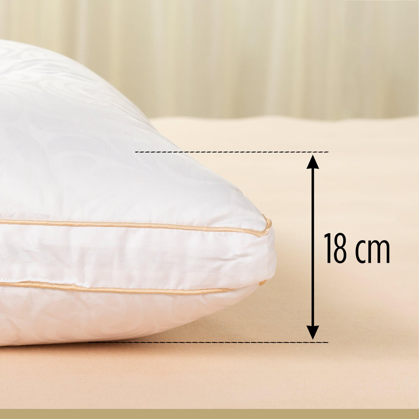 - Pernă clasică, cu profil înalt – ideală pentru dormit pe lateral sau pe spate.