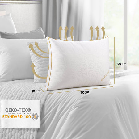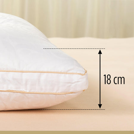 Perna Victoria's Silk Înaltă vă oferă un confort rafinat, menit să transforme fiecare minut al nopților dumneavoastră într-o experiență de relaxare deplină. Realizată din cea mai fină mătase de dud, recunoscută pentru capacitatea sa naturală de a se adapta la variațiile de temperatură și pentru respirabilitatea sa excepțională, această pernă este alegerea ideală pentru persoanele care preferă să doarmă pe o parte sau pe spate, precum și pentru cele cu umeri mai lați. Husa elegantă, de înaltă calitate, susține corespunzător zona cervicală, contribuind la un somn odihnitor și la o trezire plină de energie, fără disconfort la nivelul gâtului.