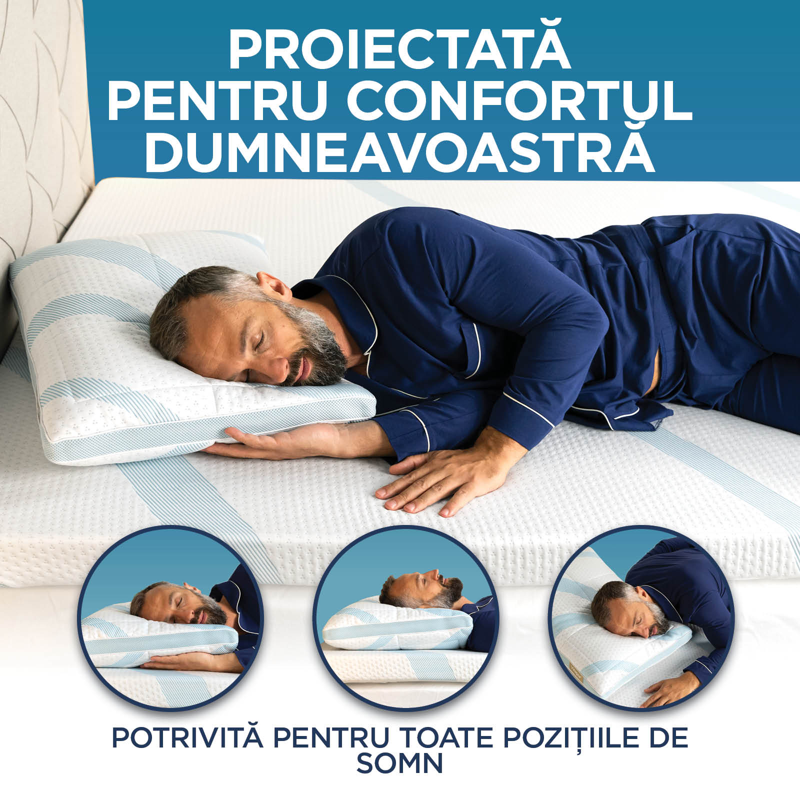 - O pernă care se adaptează perfect nevoilor și poziției tale de somn.