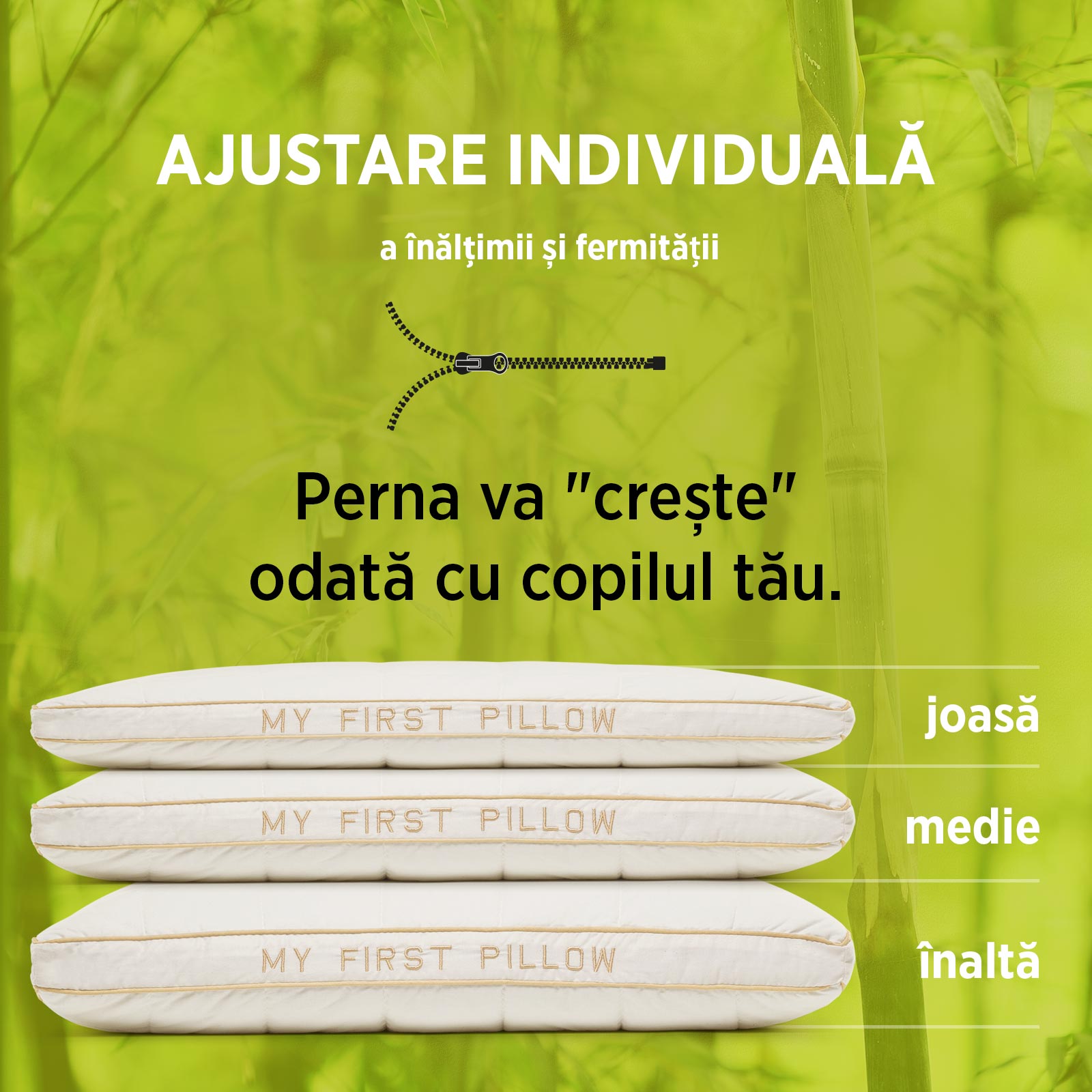 „Înălțimea pernei poate fi ajustată foarte ușor, astfel încât să crească odată cu cel mic. Tot ce trebuie să faceți este să adăugați sau să îndepărtați umplutura, pentru ca perna să rămână confortabilă și potrivită pe o perioadă cât mai lungă. Acest sistem de reglare este foarte apreciat de părinți deoarece nevoile celor mici se schimbă rapid, odată cu creșterea lor.