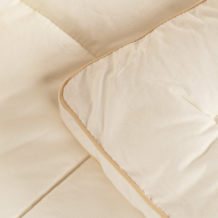 Pilota de iarnă Bamboo este deosebit de călduroasă, ideală pentru nopțile reci de iarnă sau serile răcoroase de toamnă. Oferă o respirabilitate excelentă, contribuind la un somn mai plăcut și mai odihnitor în fiecare moment al nopții. Pielea dumneavoastră va fi în contact cu materiale naturale, întrucât husa este realizată din bumbac nealbit, iar umplutura conține un adaos de fibre de bambus, pentru un plus de confort și prospețime.