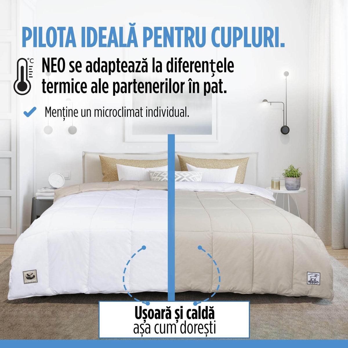 - Ideală și pentru cupluri, deoarece pilota se adaptează la diferențele termice ale oamenilor și menține un microclimat individual.