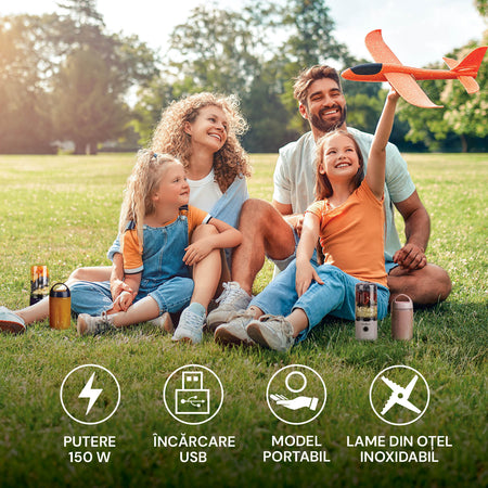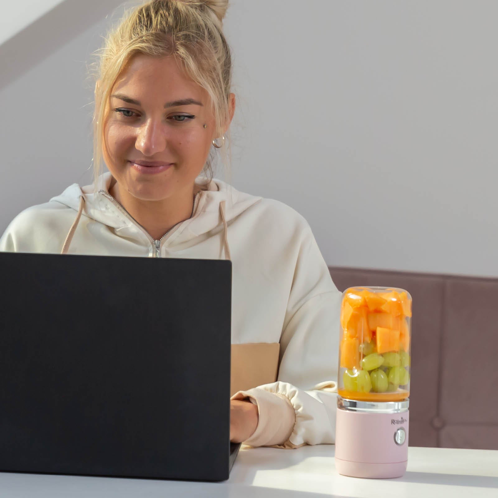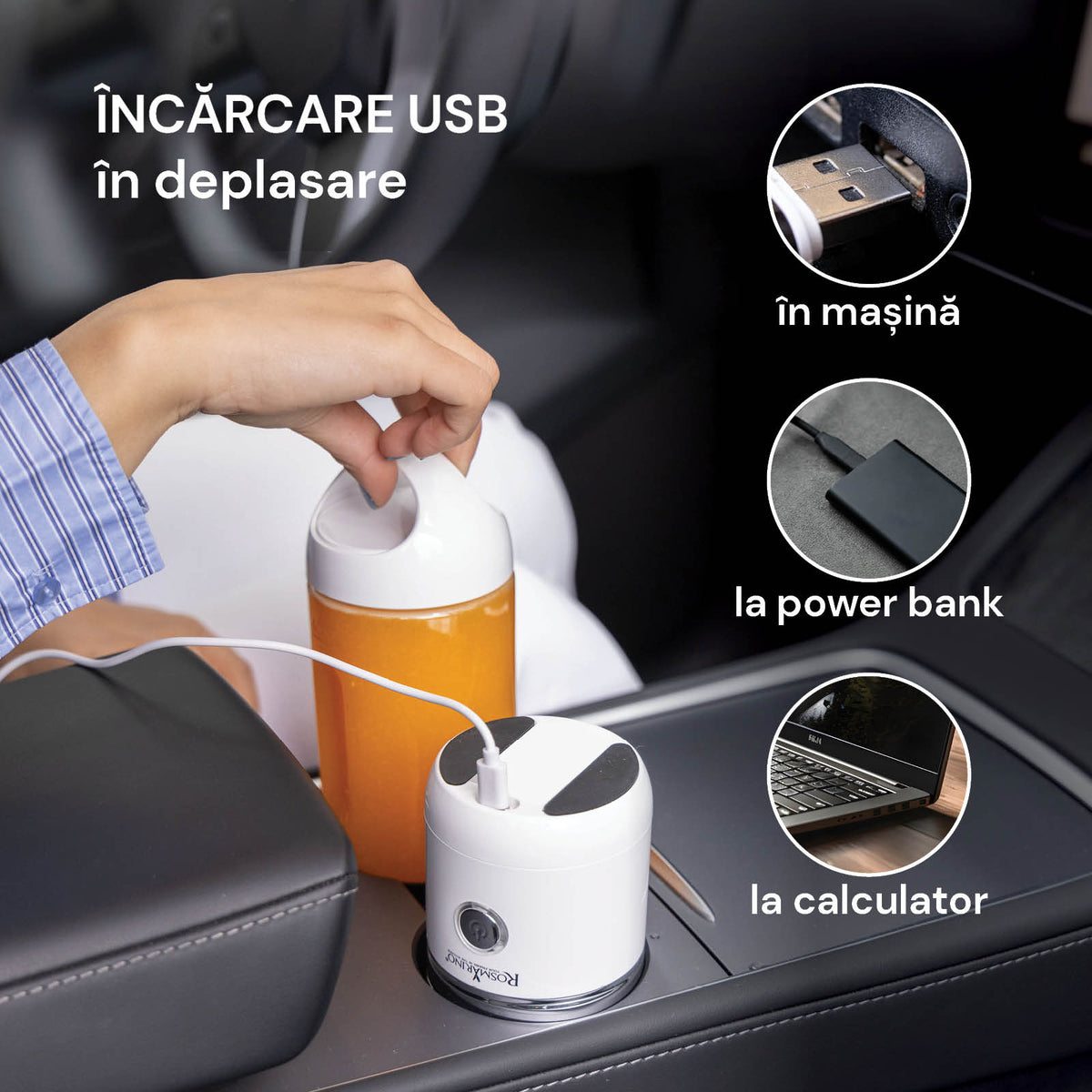 - În doar câteva secunde, blenderul portabil îți oferă un smoothie sănătos și cremos, oriunde și oricând.