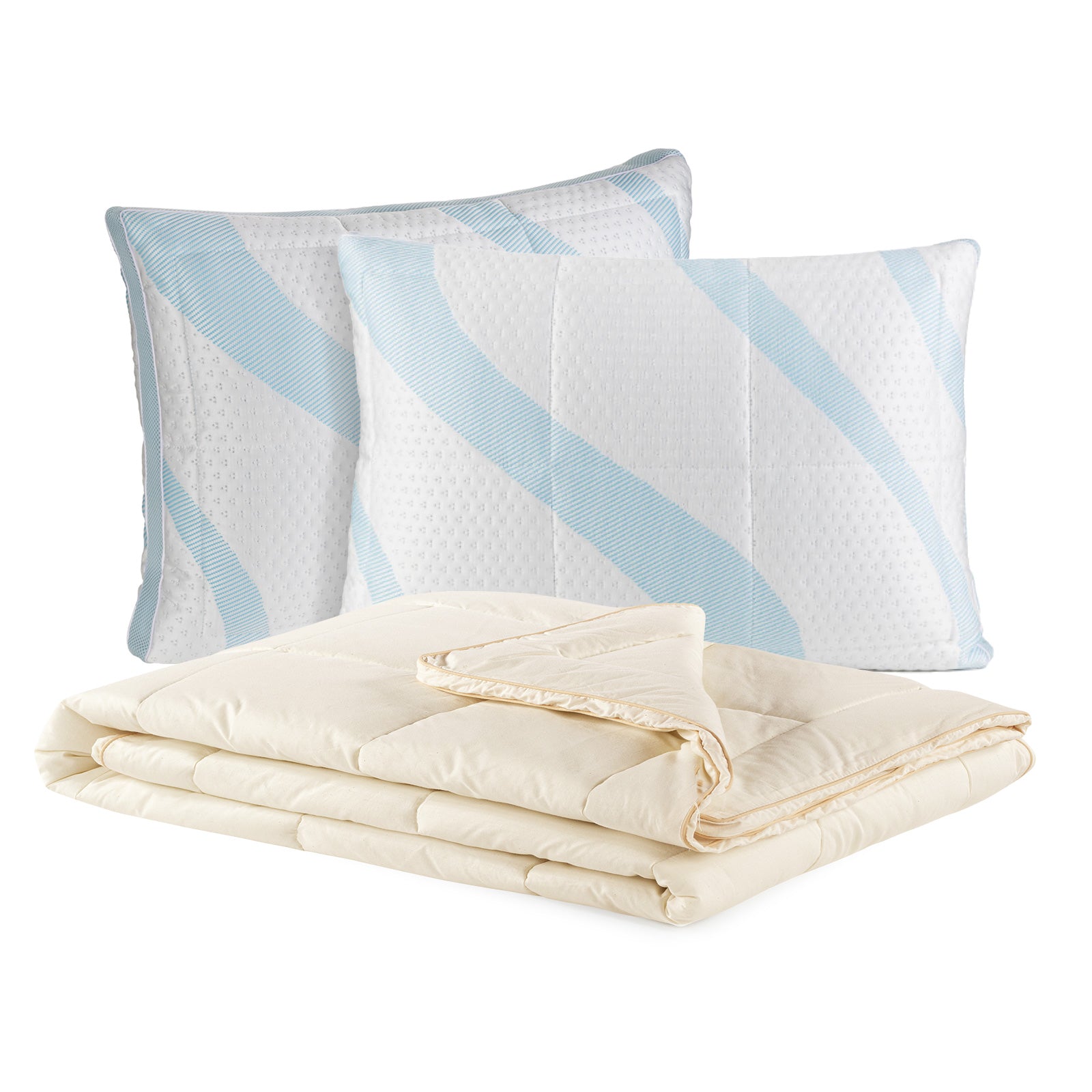 - O alegere excelentă pentru nopțile de vară fierbinți: pilotă subțire și ușoară din bambus și pernă cu efect de răcire.