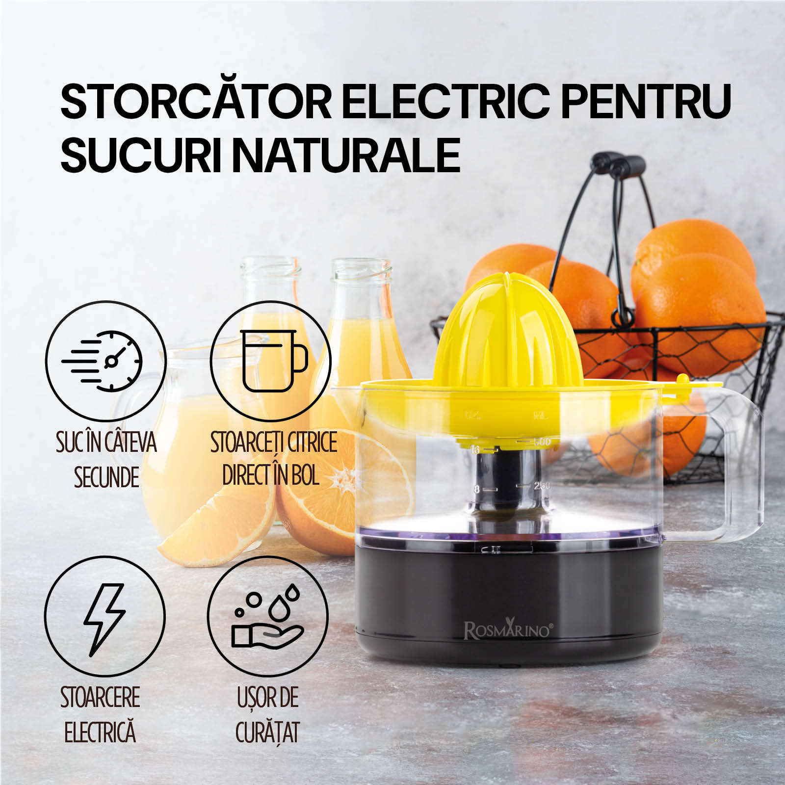 - Storcătorul electric de citrice îți oferă suc natural în doar câteva secunde.