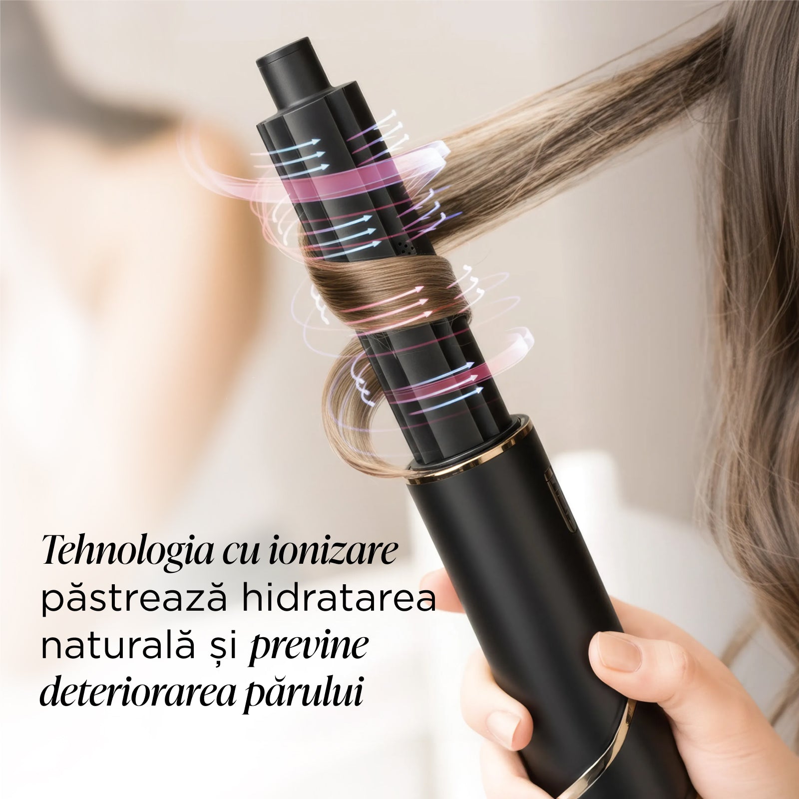 - Tehnologia de ionizare păstrează hidratarea naturală a părului și ajută la reducerea deteriorării