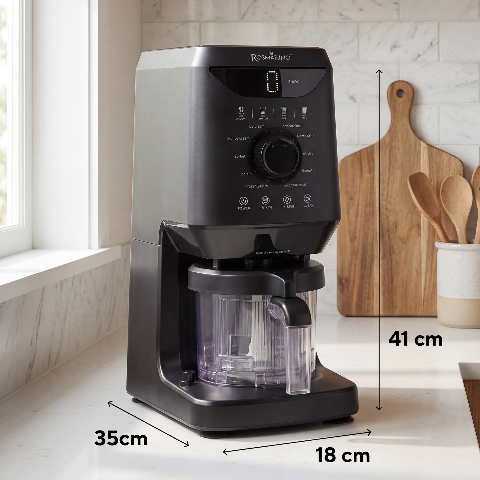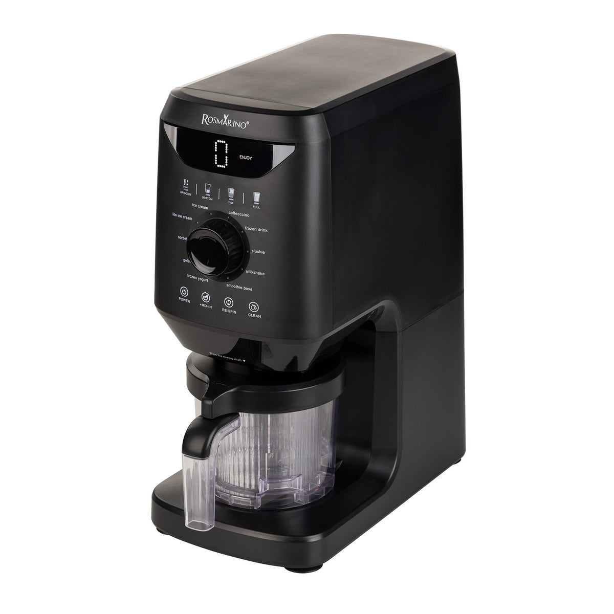 - 10 programe presetate – înghețată, înghețată light, sorbet, gelato italian, iaurt congelat, băuturi congelate, slush, băuturi cu cafea, milkshake, boluri smoothie