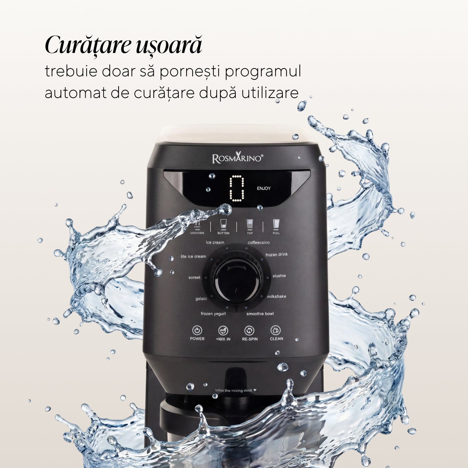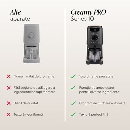 - Funcție Re-spin pentru o consistență mai fină și mai cremoasă a deserturilor deja preparate