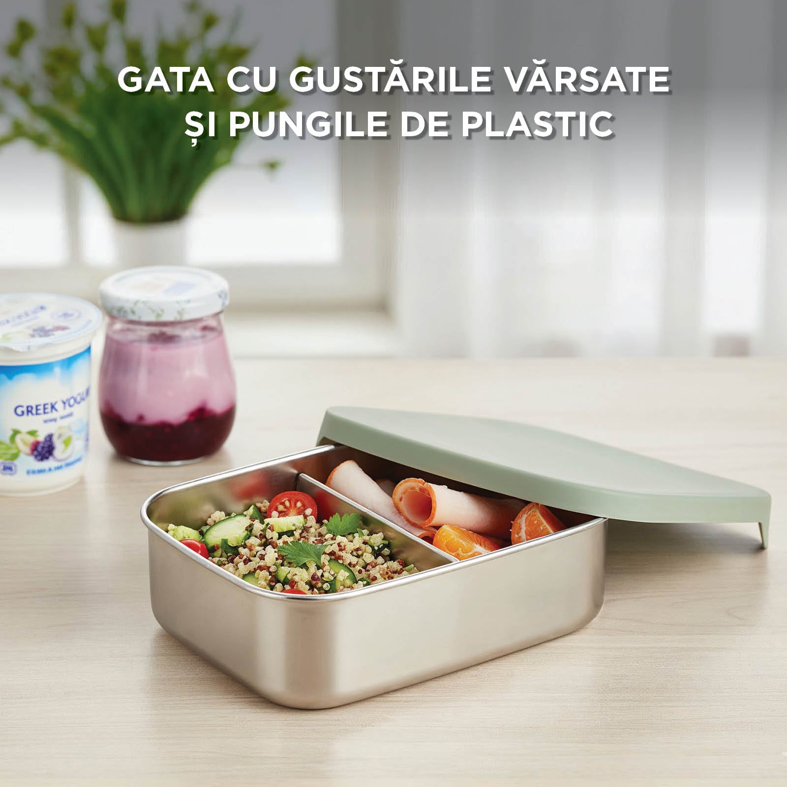 - 2 compartimente pentru a separa salata și pastele sau nucile și fructele și a păstra textura și gustul alimentelor.