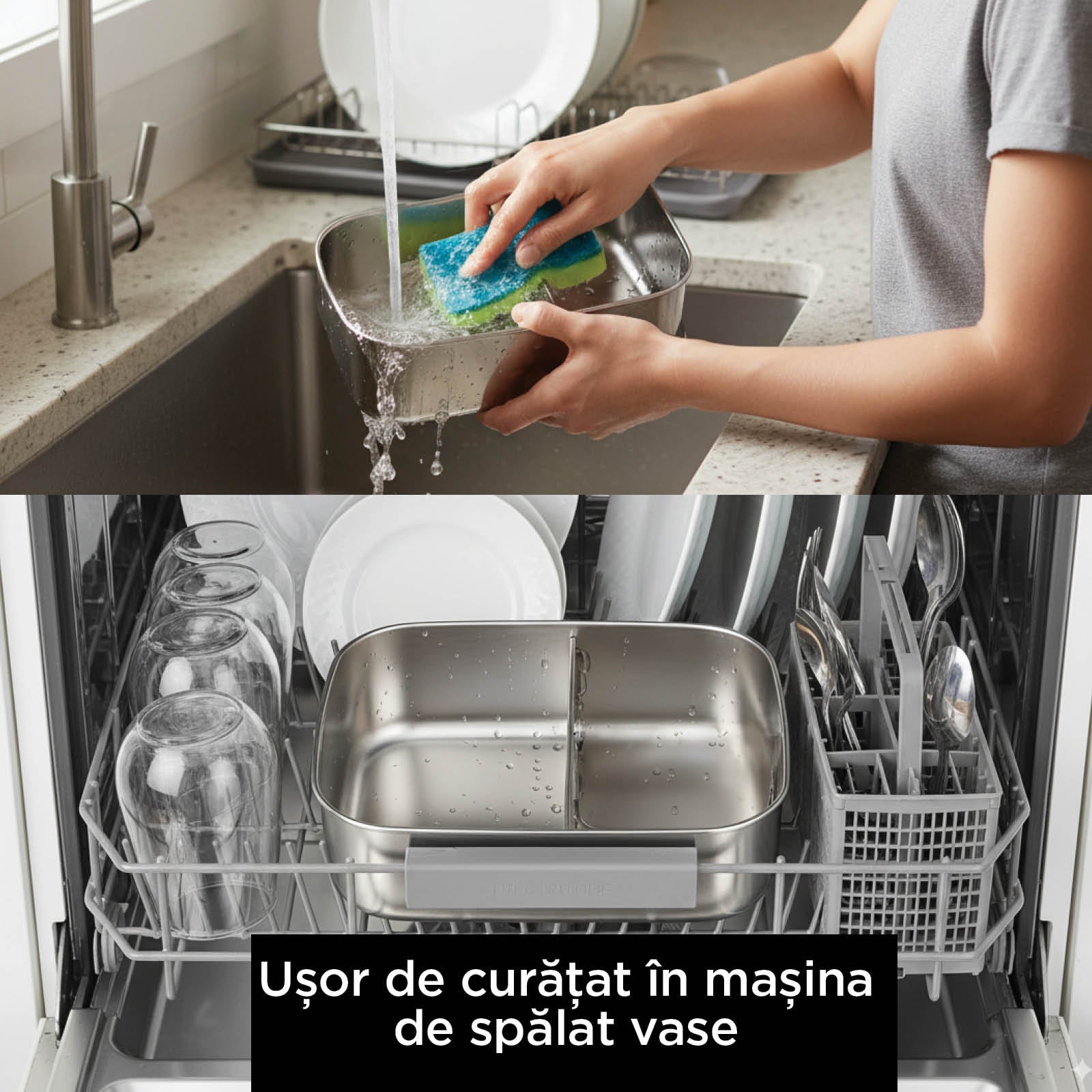 - Mâncarea rămâne proaspătă mai mult timp, deoarece oțelul inoxidabil menține temperatura optimă.