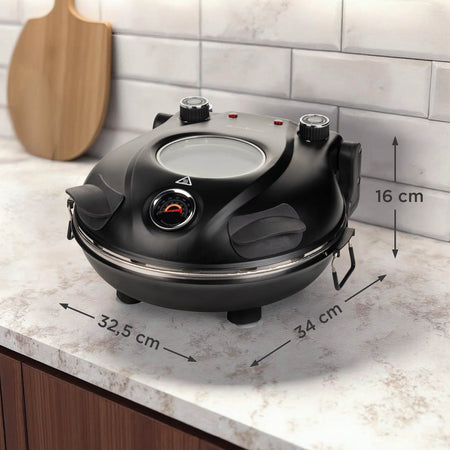 Tânjești după gustul autentic al pizzei pregătite în cuptorul cu lemne, dar pizzeria este prea scumpă, iar livrarea durează prea mult? Tot ce îți trebuie este cuptorul electric pentru pizza Rosmarino! Grație puterii de încălzire de până la 400 °C, rezistenței superioare și inferioare și pietrei ceramice, acest dispozitiv recreează efectul cuptorului cu lemne. În acest fel, te vei bucura de o pizza perfectă în doar câteva minute, cu o crustă aurie și crocantă, brânză perfect topită și toppingul tău preferat, care nu se usucă din cauza coacerii excesive. Termometrul încorporat și fereastra de vizualizare te ajută să monitorizezi stadiul preparării, fără a ghici sau a deschide dispozitivul pentru verificare. Prepară pizza proaspătă de casă sau congelată, lipii, plăcinte și tortilla. Creațiile tale culinare vor rivaliza cu ușurință cu cele din pizzeria ta preferată!