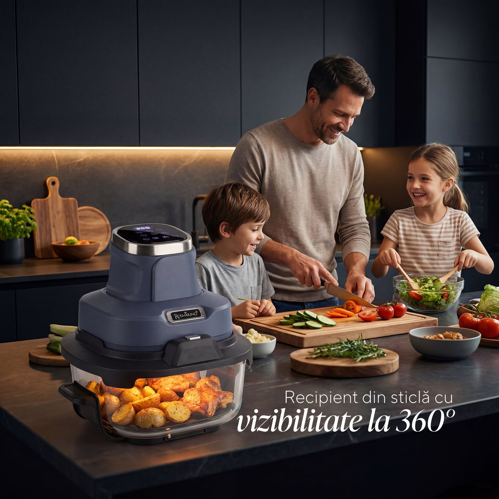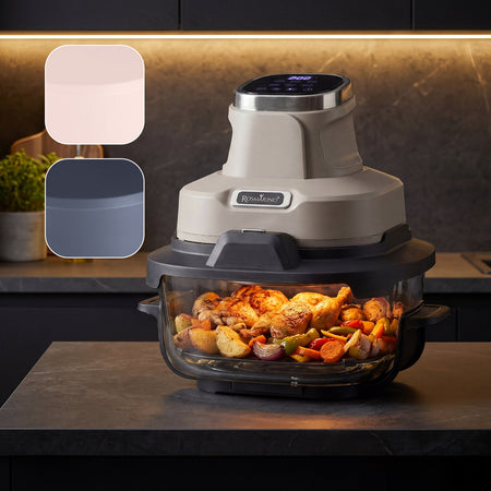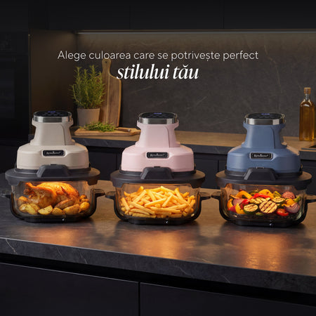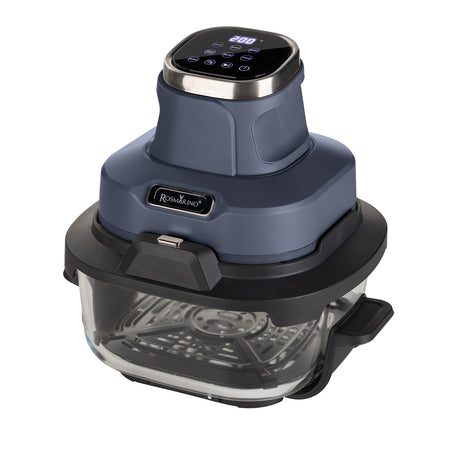 Friteuză cu aer cald portabilă din sticlă Rosmarino Airfryer Crispy PRO Series 6-în-1 – 4,5 L + 1,8 L, albastru