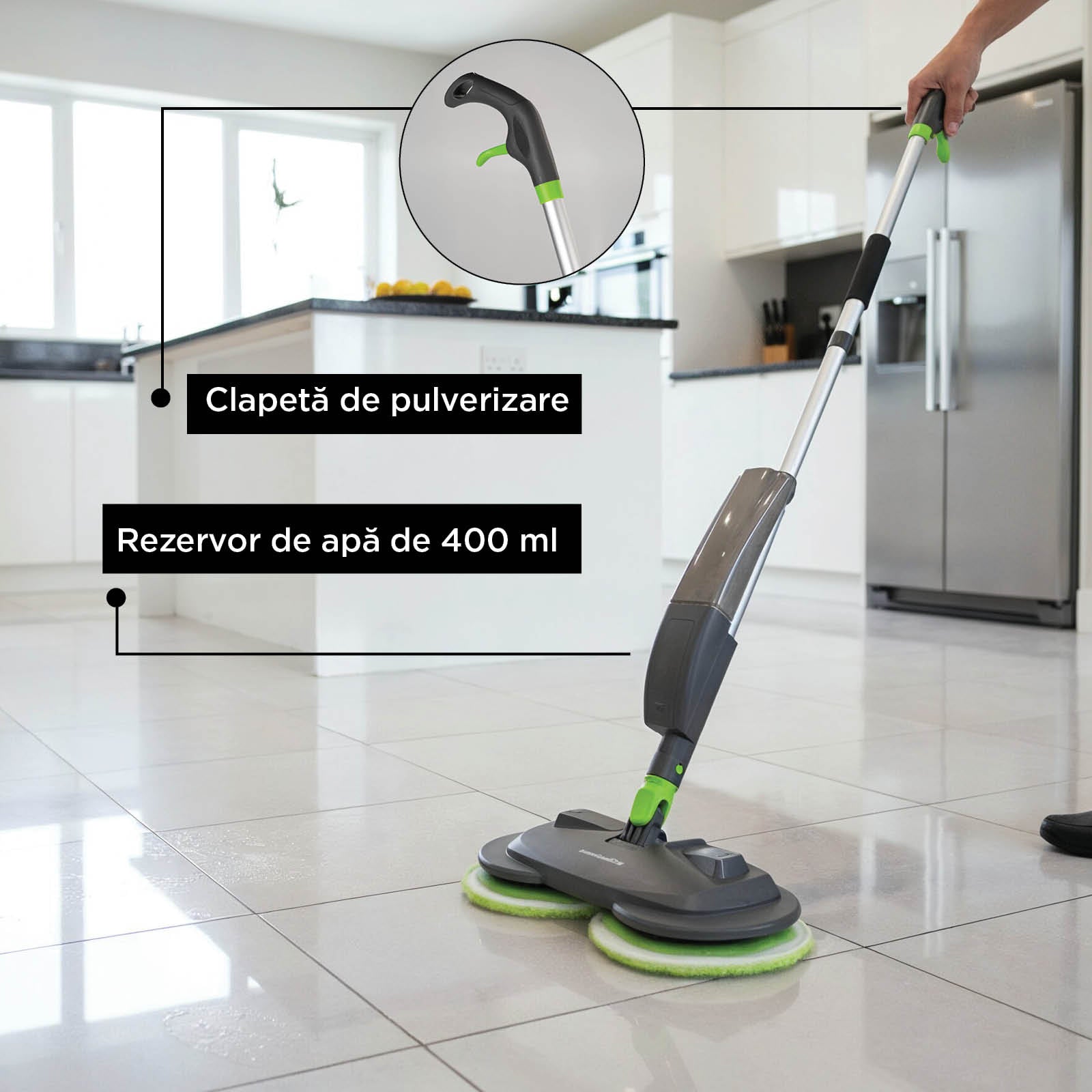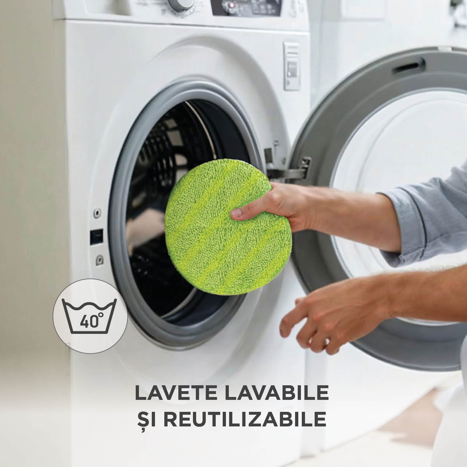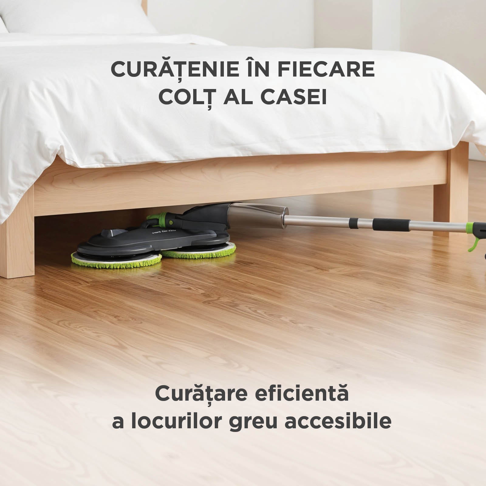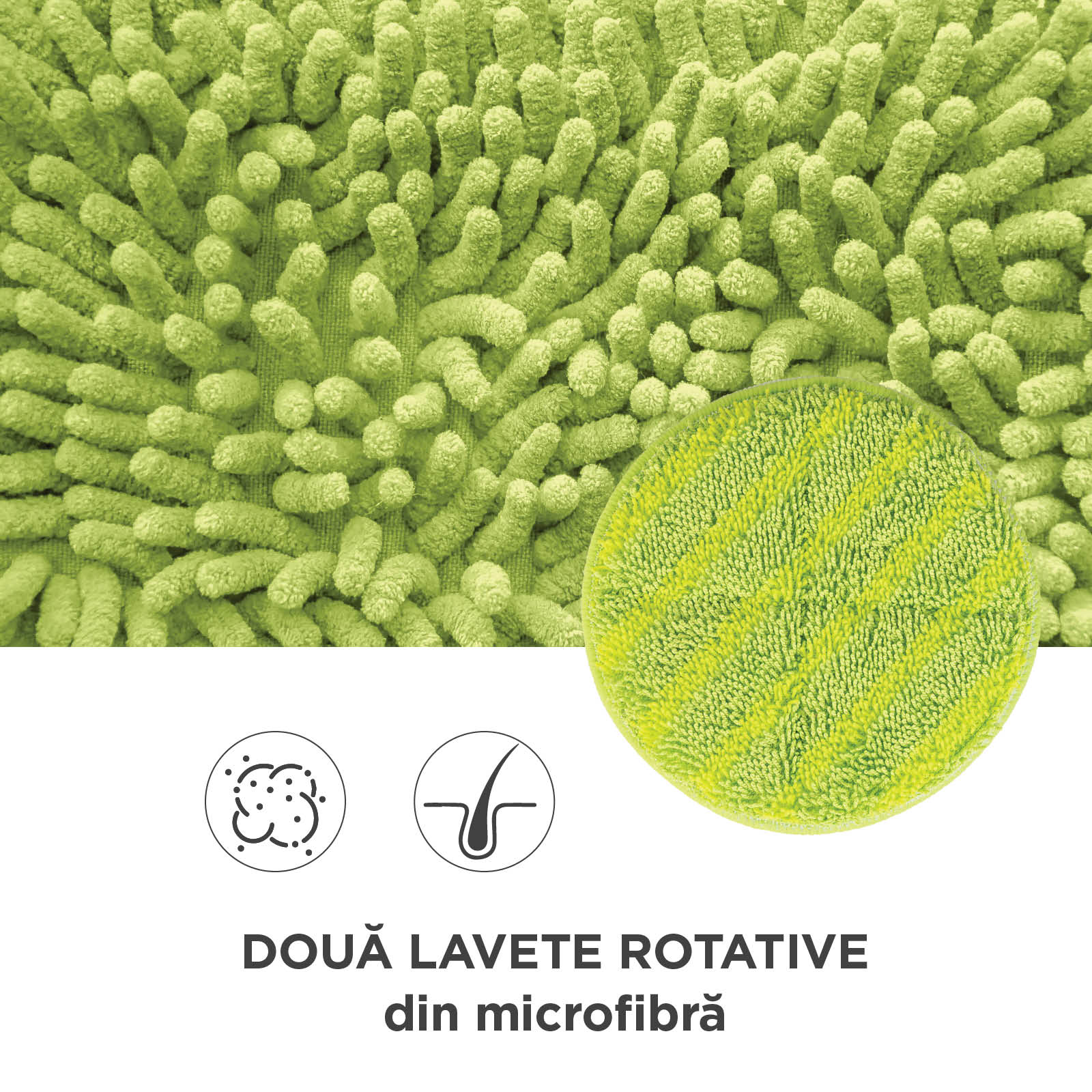 • 2 lavete rotative din microfibră pentru eficiență dublă și curățarea zonelor greu accesibile.