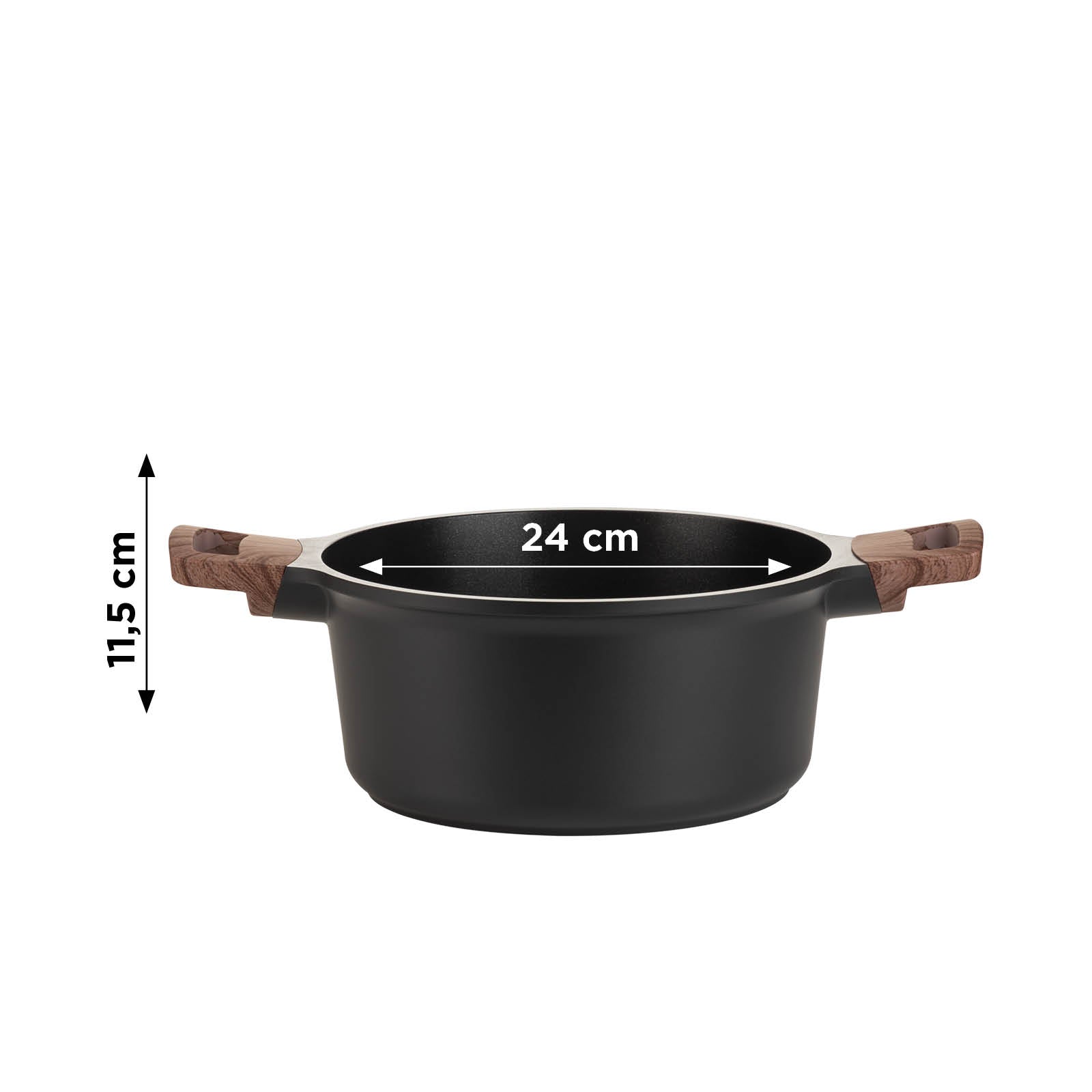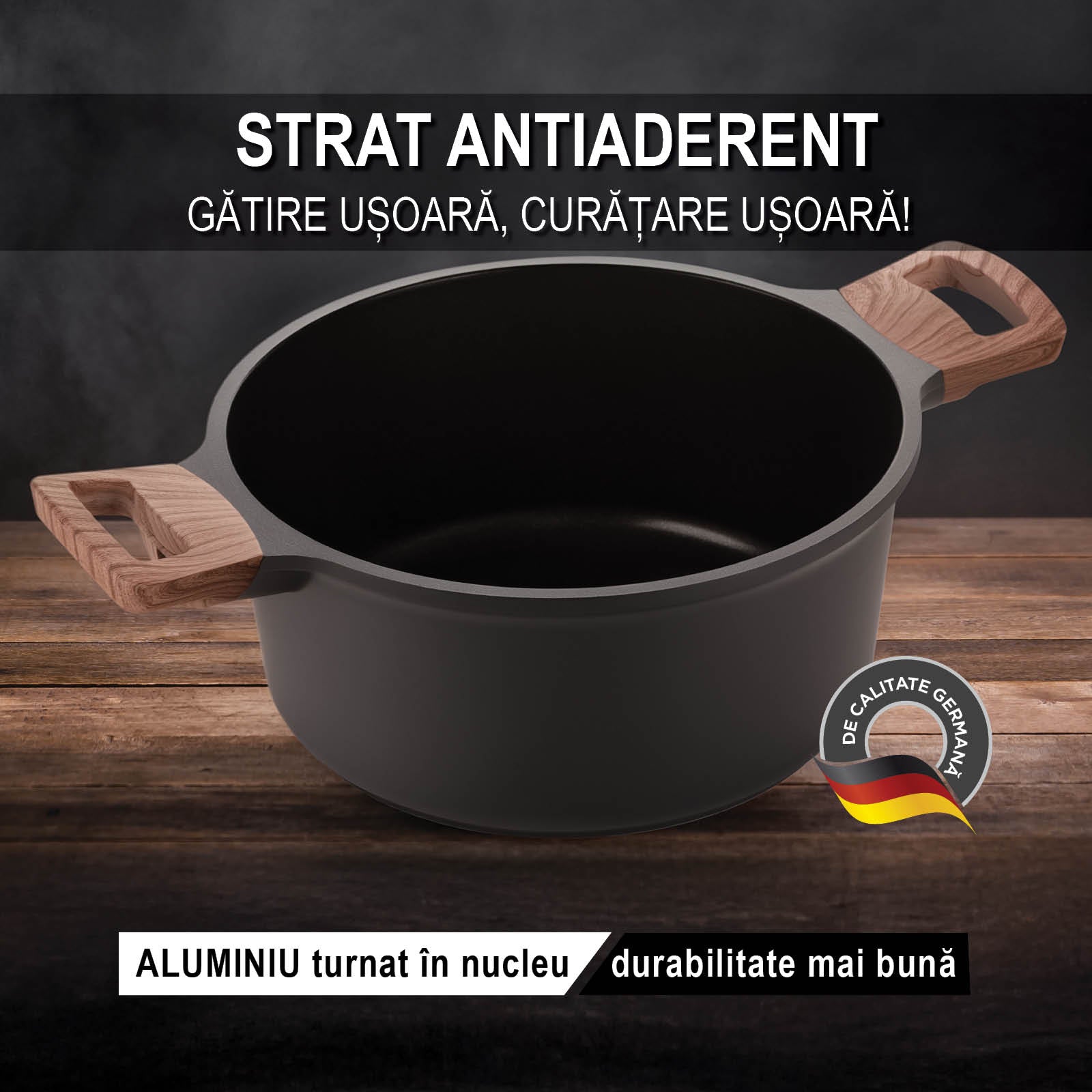 - Oală cu diametrul de 24 cm, realizată din aluminiu turnat de înaltă calitate.