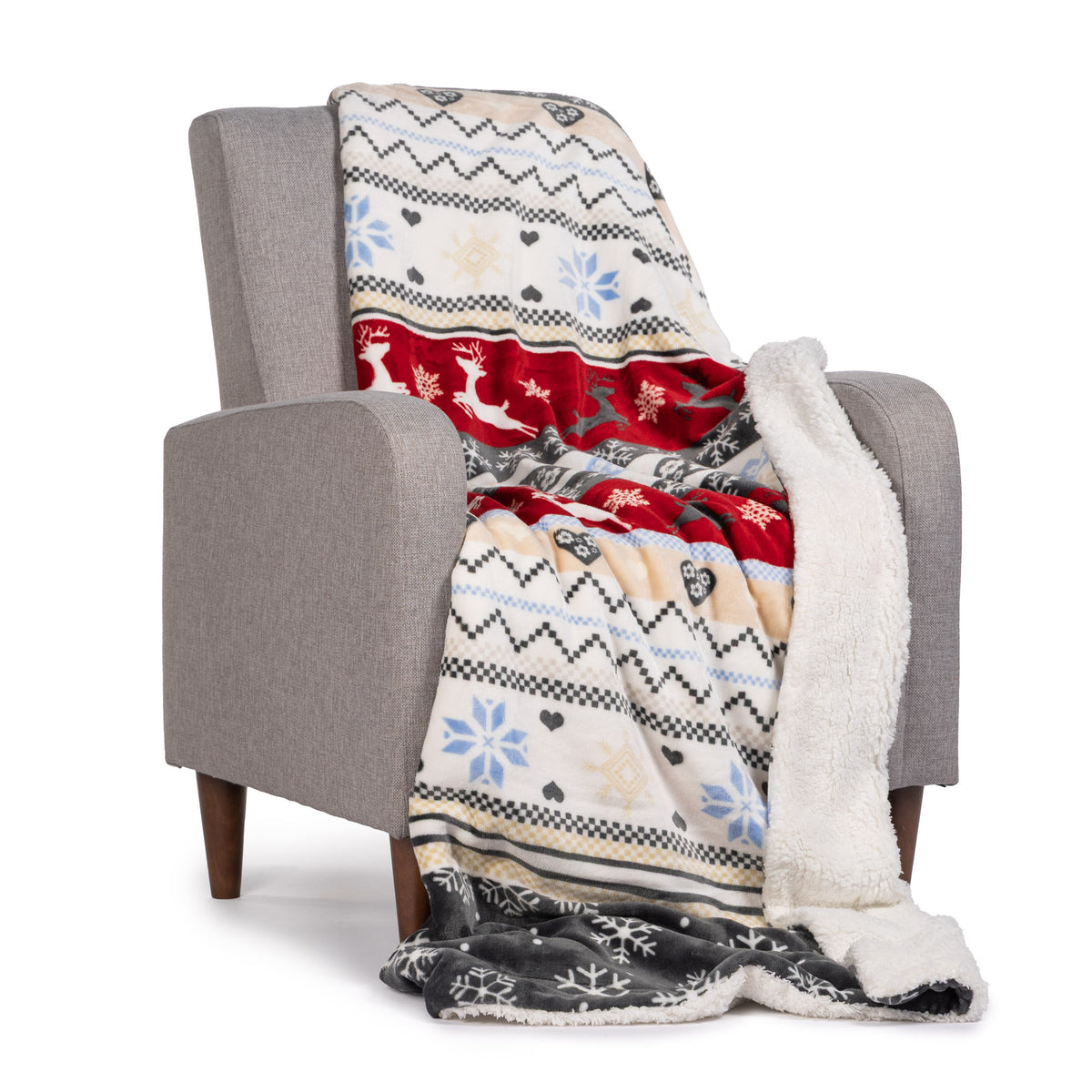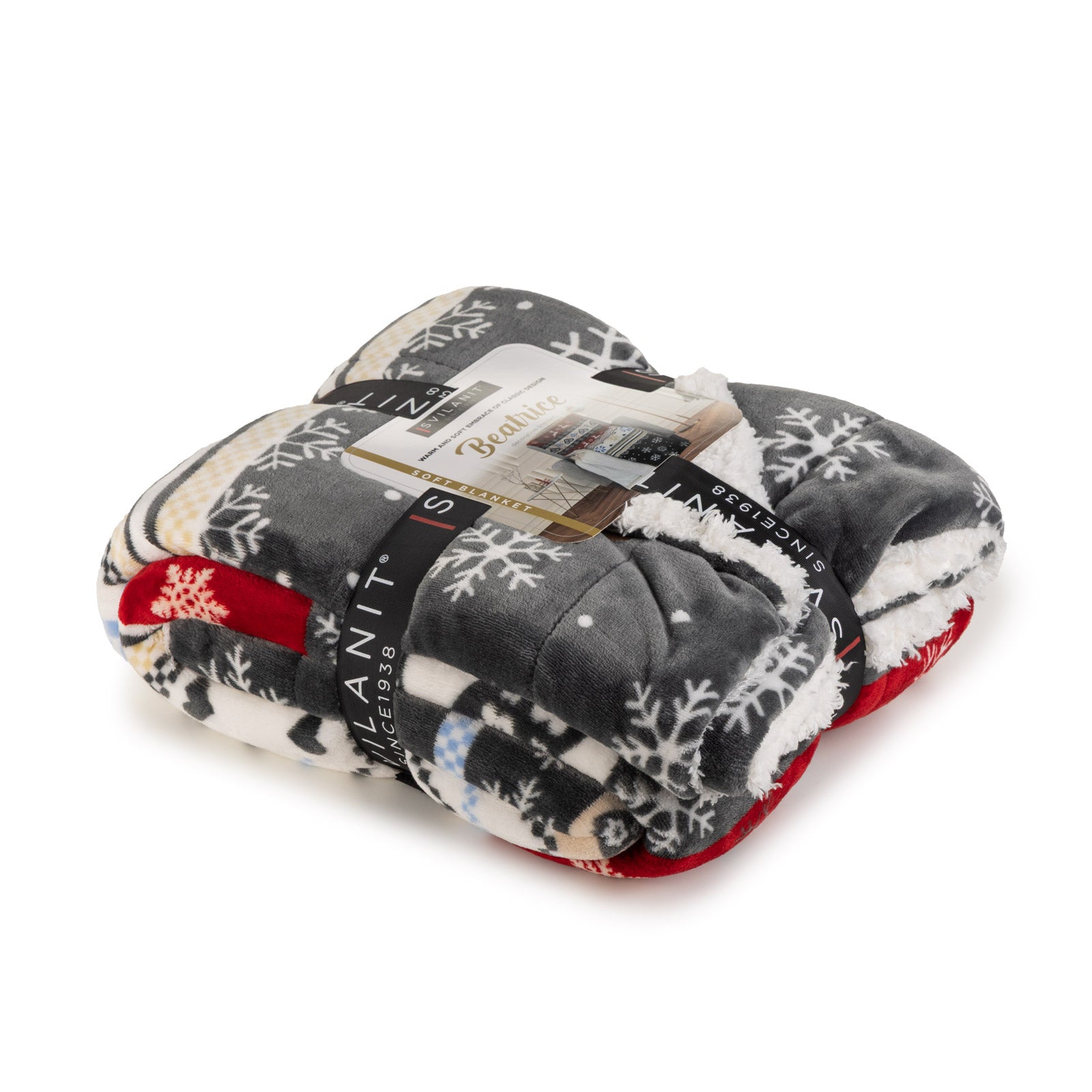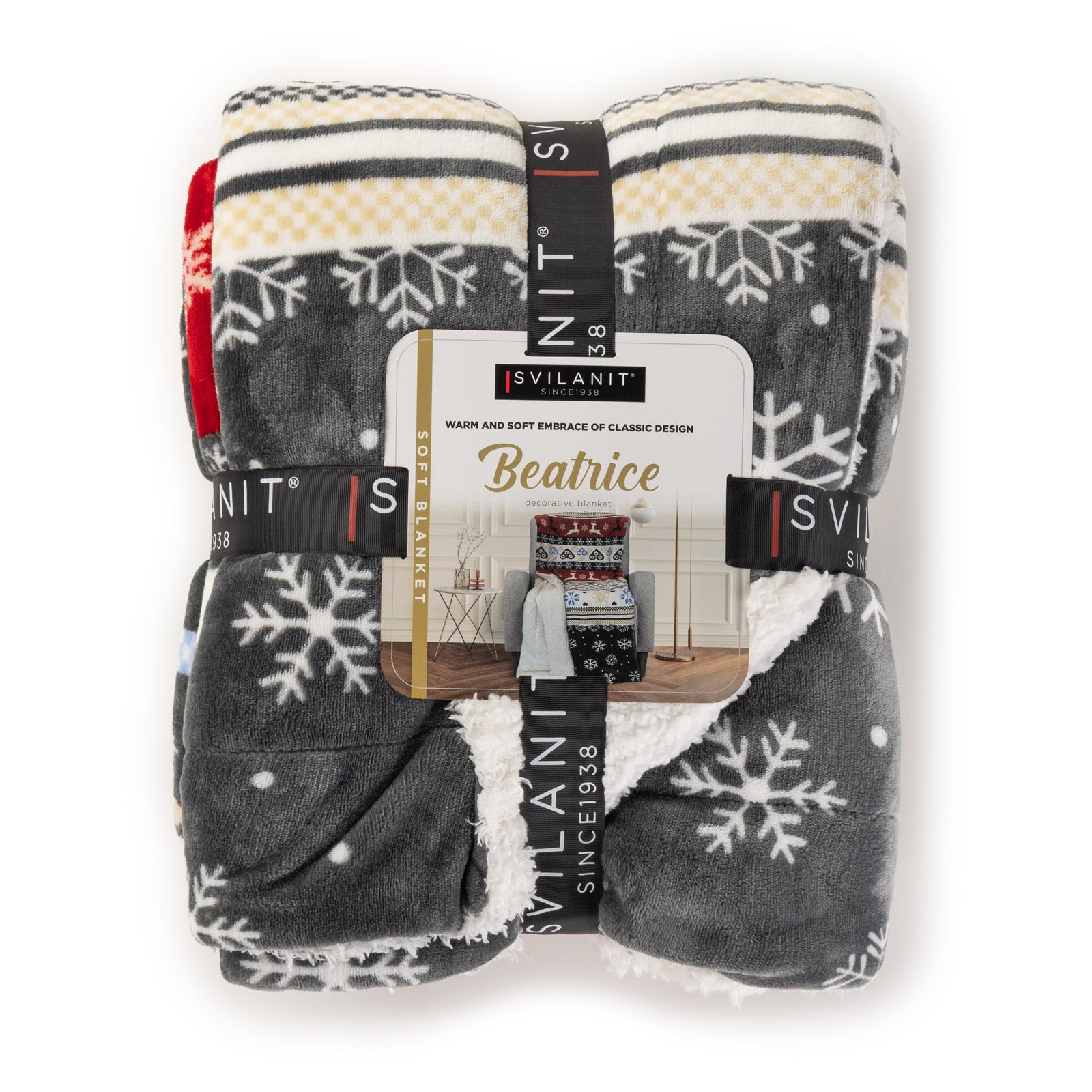 • Pătură cu două fețe, în culori calme sau cu model de iarnă, care oferă eleganță oricărei încăperi.