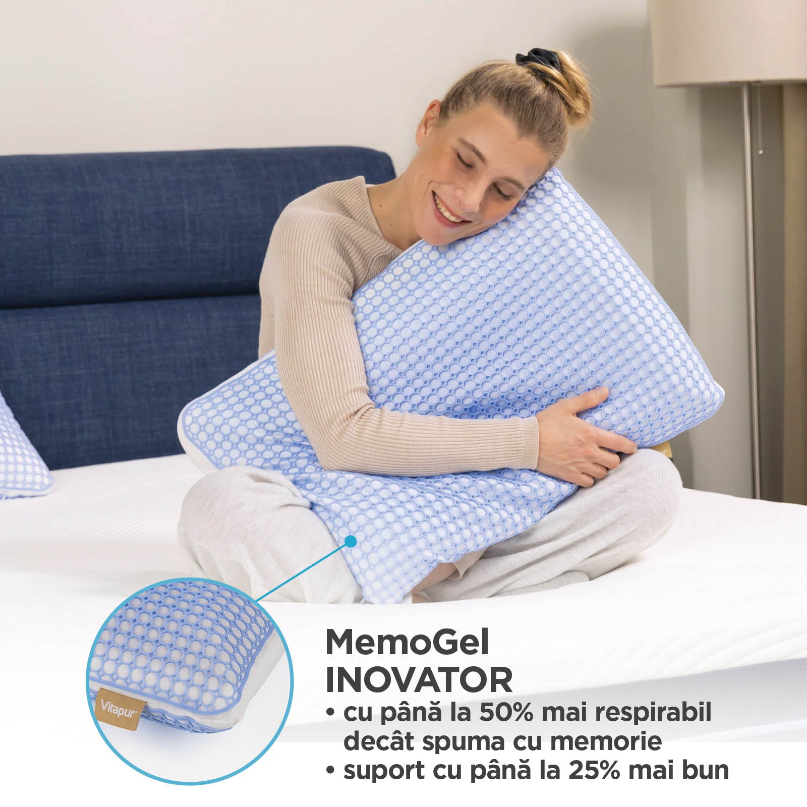 - Materialul inovator MemoGel oferă un suport cu până la 25% mai bun și este cu 50% mai respirabil decât spuma cu memorie standard.