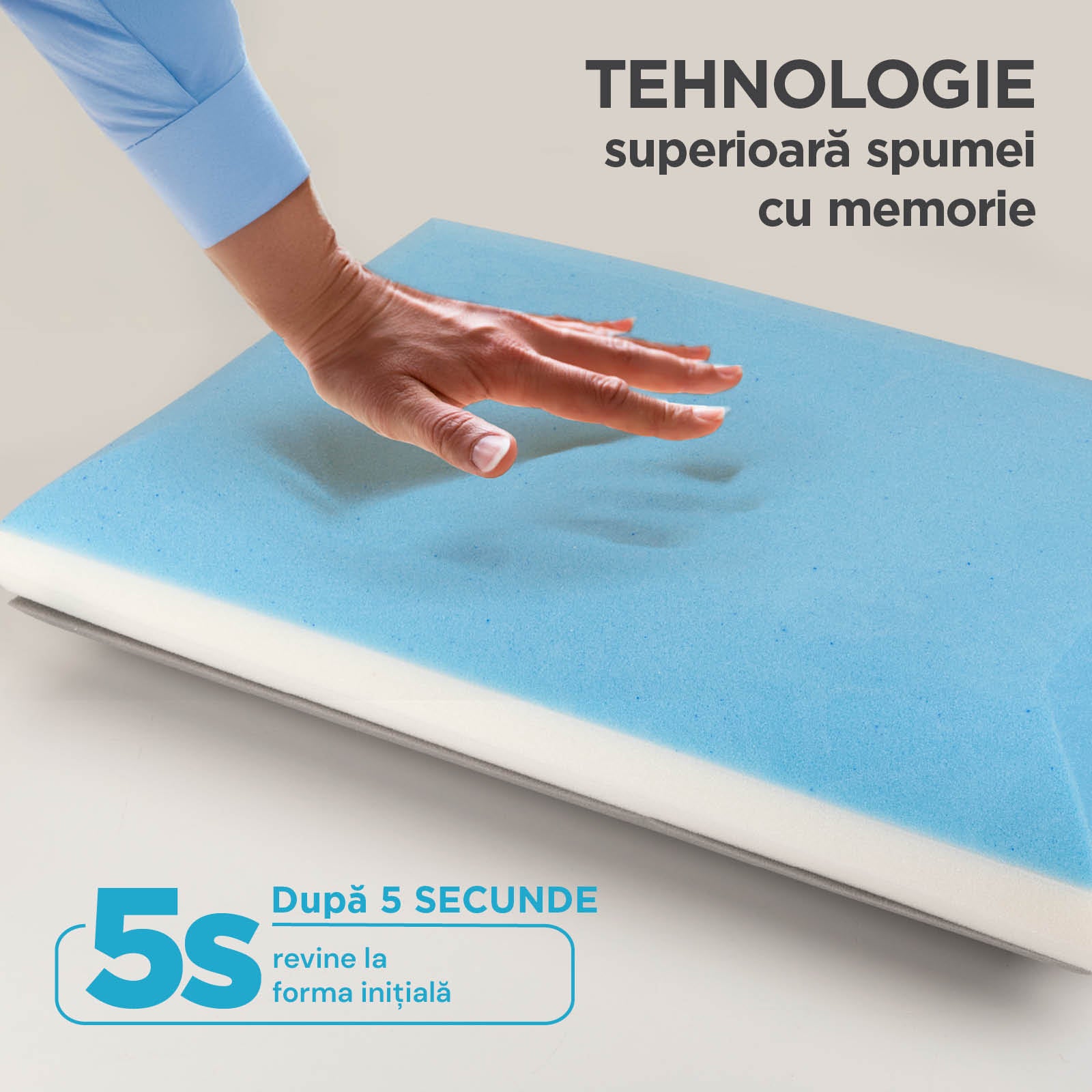 - Spuma cu memorie cu gel previne eficient transpirația și asigură un mediu proaspăt pentru somn.