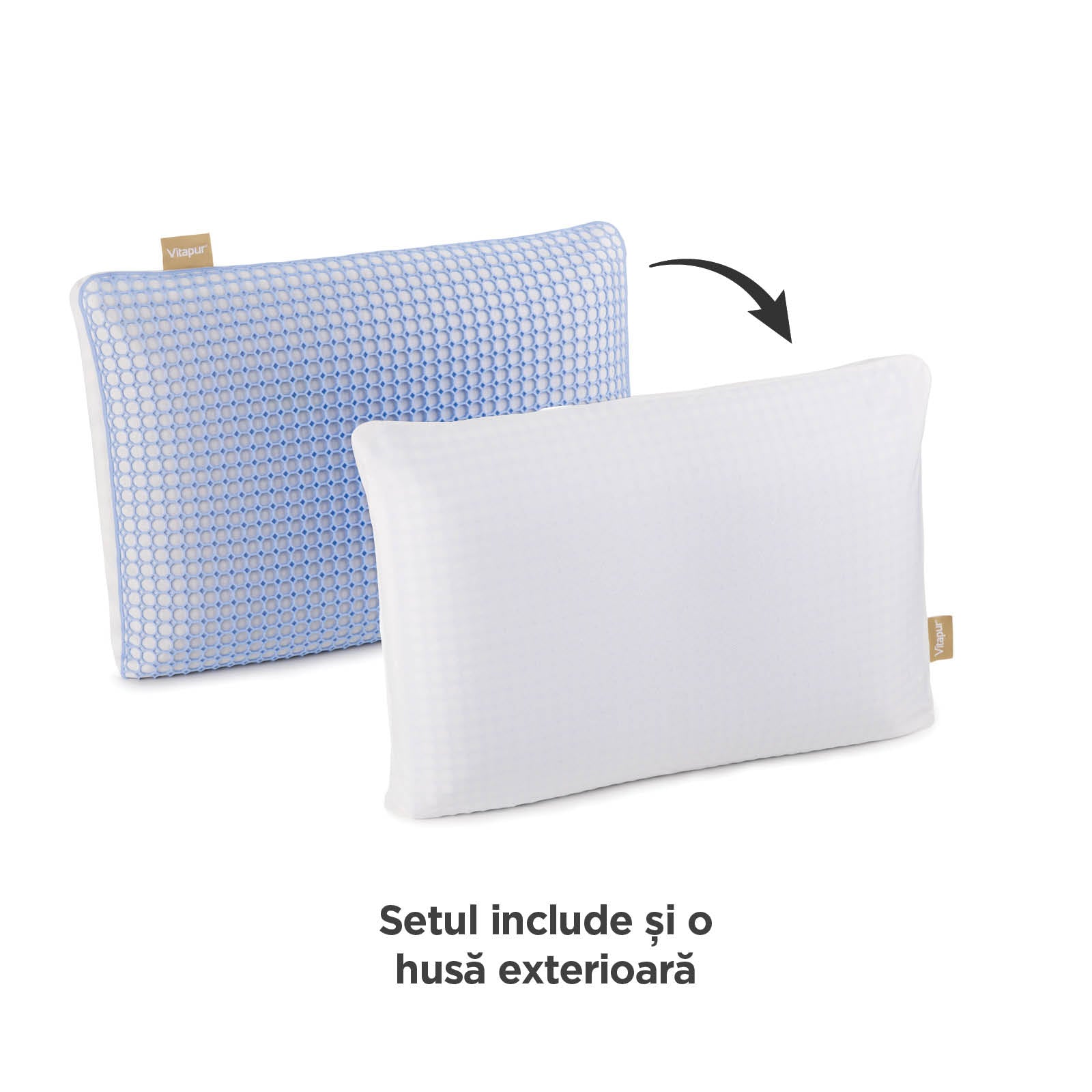 - Materialul inovator MemoGel oferă suport îmbunătățit și respirabilitate superioară față de pernele convenționale din spumă.
