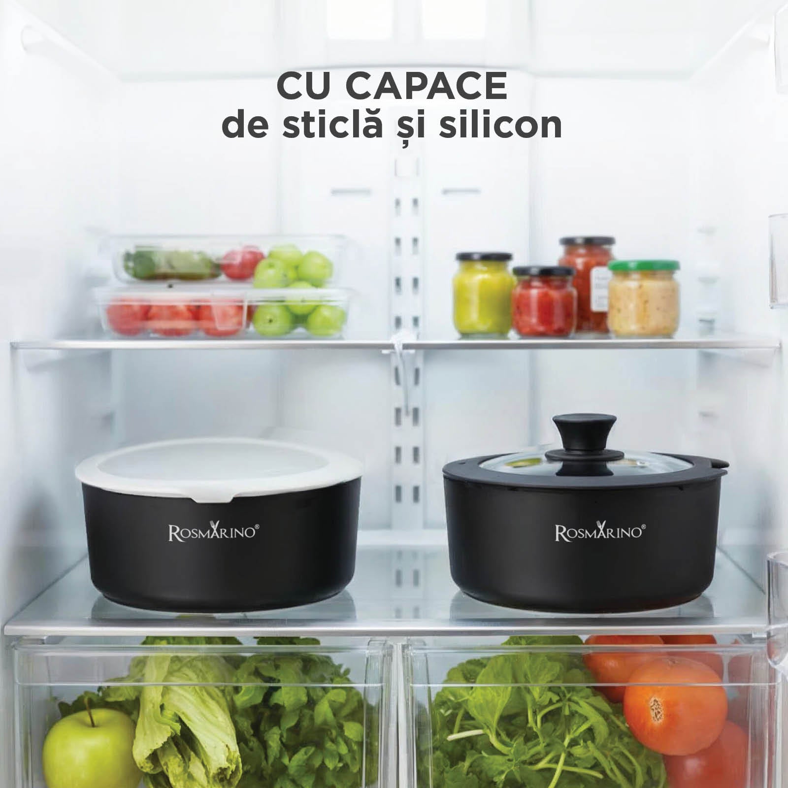 O scenă des întâlnită în orice bucătărie: aragaz plin de oale și mutarea mâncării din oală în tavă și apoi în recipiente din plastic pentru depozitare. Rezultatul: o chiuvetă plină de vase și mult efort atunci când încerci să le pui la loc. Setul Rosmarino Click&Cook te ajută să scrii un scenariu complet nou. Poți fierbe pastele într-o oală, apoi o poți pune cu ușurință în cuptor pentru a le gratina. Resturile le acoperi pur și simplu cu un capac din silicon și le depozitezi în frigider. Vasele sunt rezistente la temperaturi ridicate, au un strat antiaderent pentru o gătire mai sănătoasă cu mai puțină grăsime și pot fi stivuite cu ușurință. Mai puține vase, mai puțin spălat și fără probleme legate de spațiu. Soluția este Click&Cook.