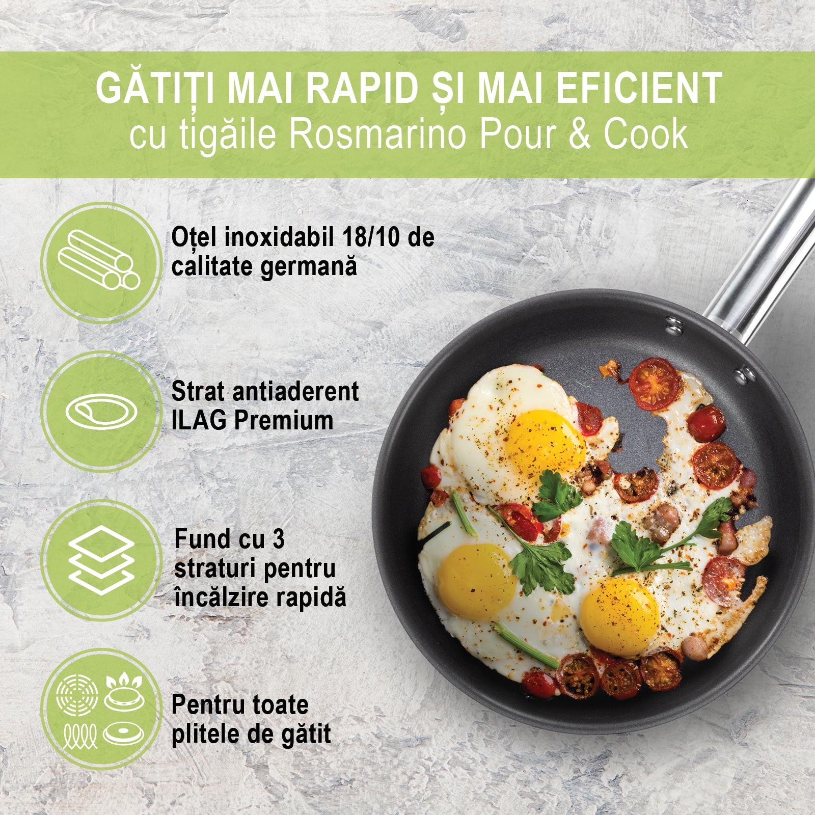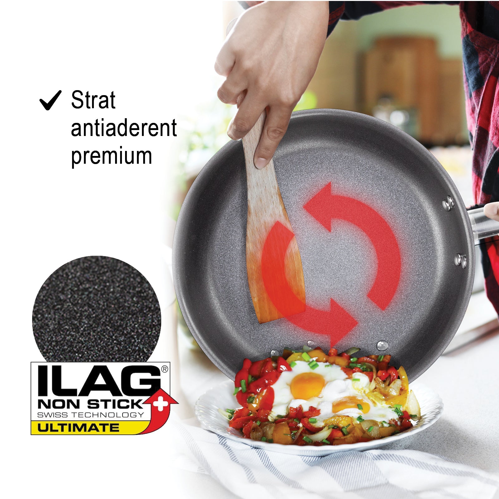 - Partea inferioară cu 3 straturi pentru încălzire mai rapidă și acoperire ILAG Premium antiaderență.